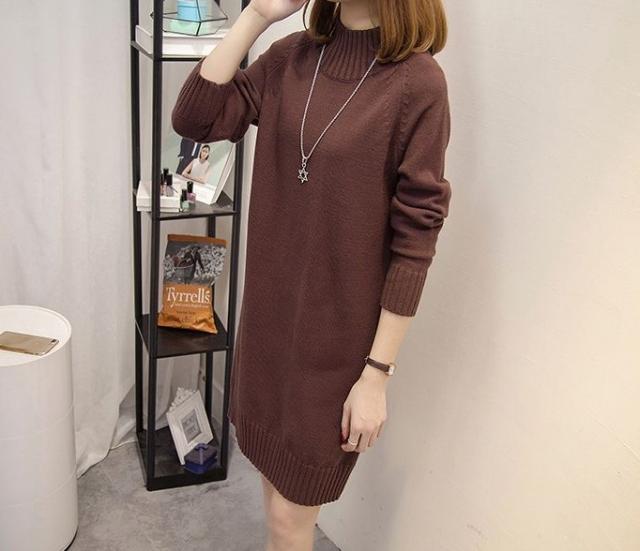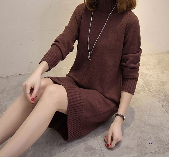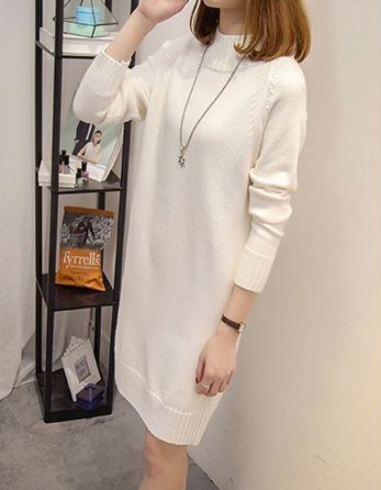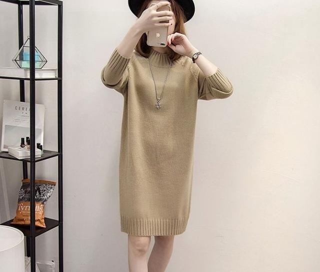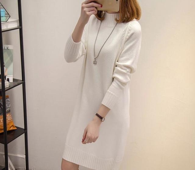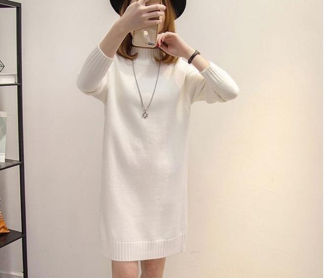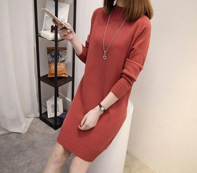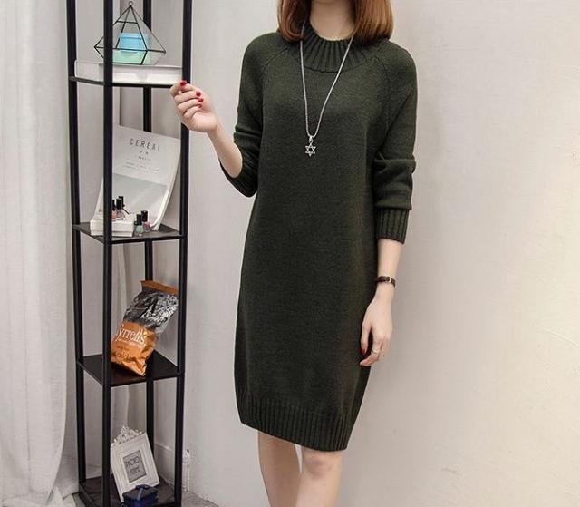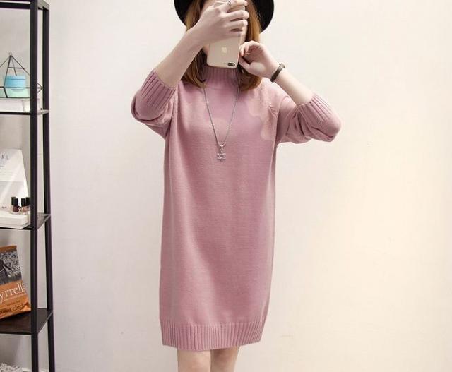 ハイネック ニットワンピース シンプル 無地 レディース くすみカラー 春 秋 冬 きれいめ 大人 抜け感 チュニック 体系カバー 長袖 Iライン ストレート 20代 30代 40代 50代 ひざ丈 膝上 カジュアル 可愛い 大人可愛い ОL 通勤 デート