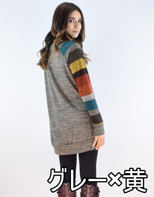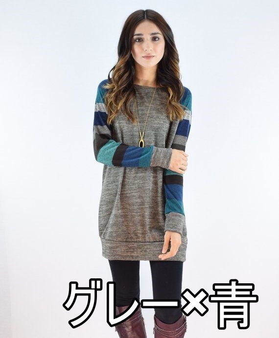 ボーダー チュニック カットソー トップス ラグラン くすみカラー 秋 冬 レディース こなれ感 細見え 20代 30代 40代 50代 レトロ アジアン エスニック 大人可愛い カジュアル 切り替え 個性派 個性的 ワンピース お洒落 オシャレ 長袖
