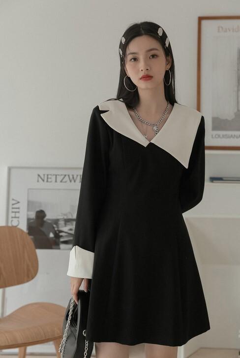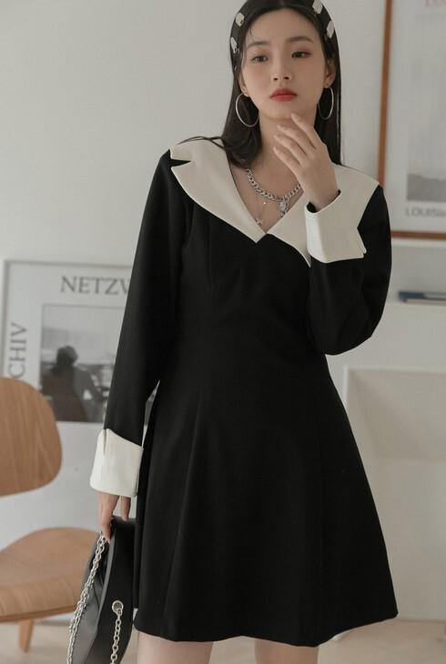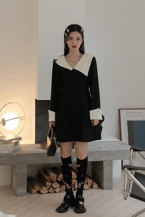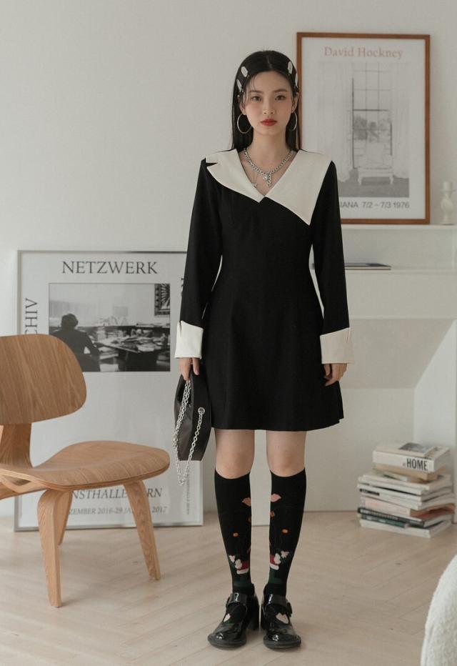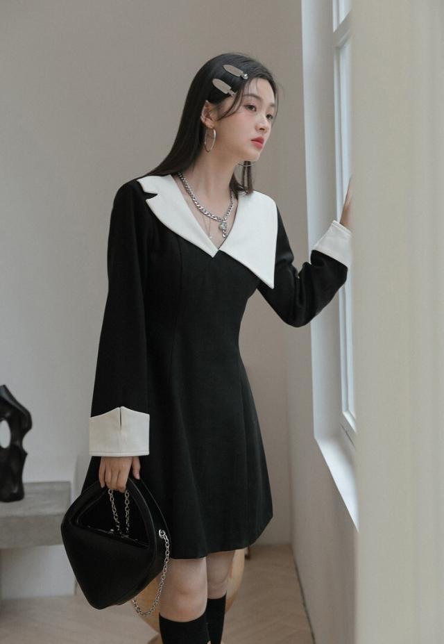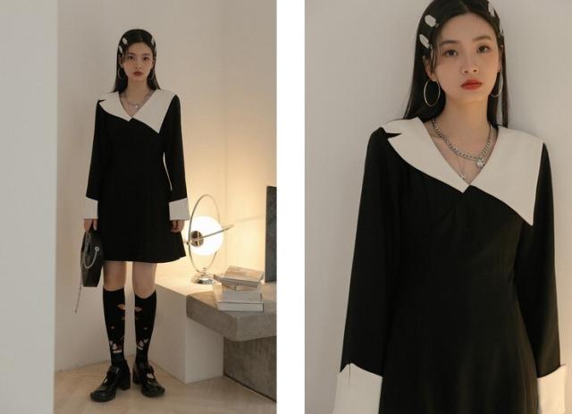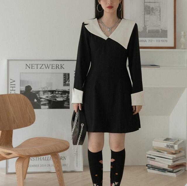 ワンピース 襟デザイン 膝上 ミニ丈 袖あり 長袖 薄手 かわいい 大人可愛い きれいめ 上品 おしゃれ 大人可愛い 個性的 モダン 主役級 二次会 披露宴 10代 20代 30代 レディース 女性用 デート お出かけ 女子会 パーティー イベント ホテル ファッション コーデ スタイル モテ
