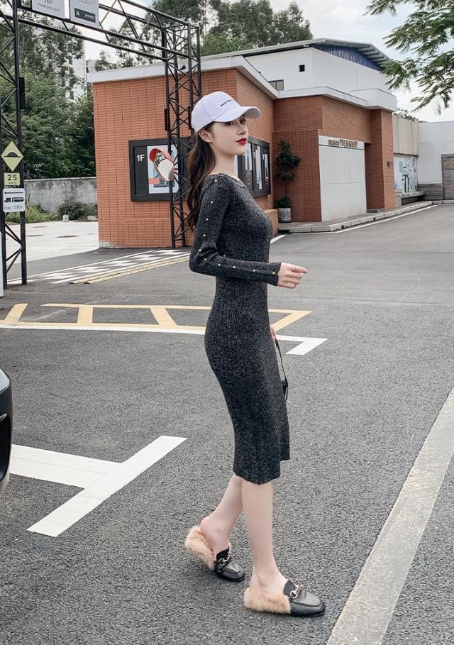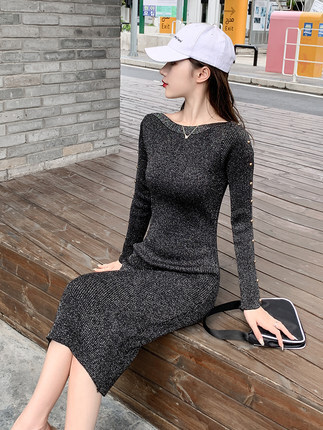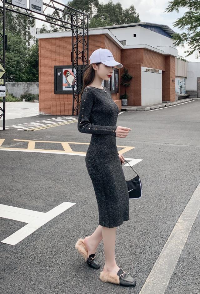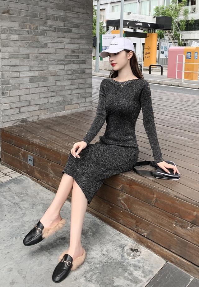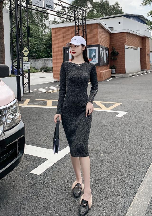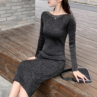 ボートネック 膝下 ロングワンピース ニットワンピース レディース 春 秋 冬 20代 30代 40代 50代 黒 通勤 ОL デート 女子会 エレガント ドレス ラウンドネック タイト スリム 細見え 無地 シンプル カジュアル セクシー かわいい 大人可愛い