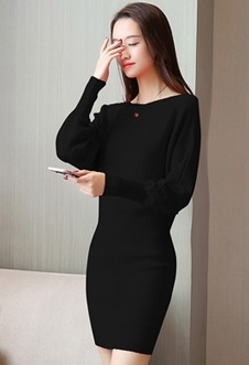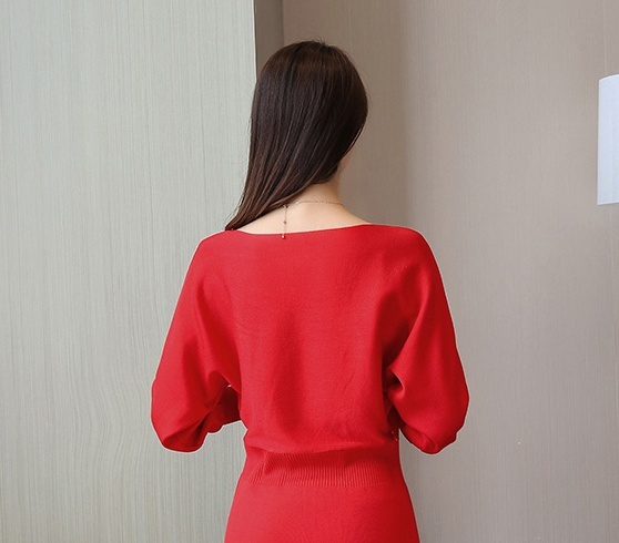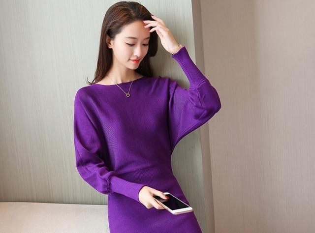ドルマンスリーブ ミニ丈 ニットワンピース レディース ドルマン ミニワンピ 韓国 長袖 シンプル 無地 紫 赤 セクシー 大人 大人可愛い エレガント こなれ感 ボートネック スリム タイト 細見え 二の腕 体系カバー 華奢 華奢見え ニット 20代 30代