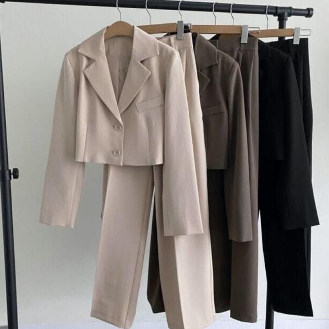 セットアップ ジャケット ワイドパンツ ショート丈 2点セット 上下セット きれいめ シンプル 大人 上品 おしゃれ お洒落 かっこいい こなれ感 メンズライク マニッシュ クール 抜け感 M L オフホワイト 白 黒 ブラック 茶色 ブラウン 無地 春 秋 冬 オールシーズン シーズンレス 20代 30代 40代 50代 ママ オフィス ビジネス OL 通勤 着回し お揃い 双子 韓国 オルチャン