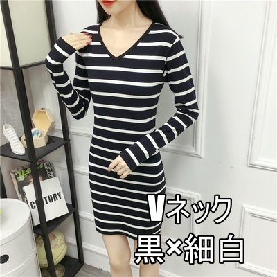 選べる 8種類 ミニワンピース ストライプ ボーダー レディース ニットワンピース きれいめ タイト スリム 細身 大きいサイズ 大きめ 大人 大人女子 可愛い お洒落 オシャレ シンプル カジュアル ミニ丈 ラウンドネック Vネック 長袖 着回し 20代