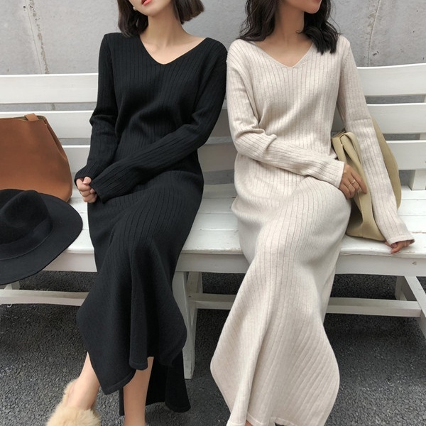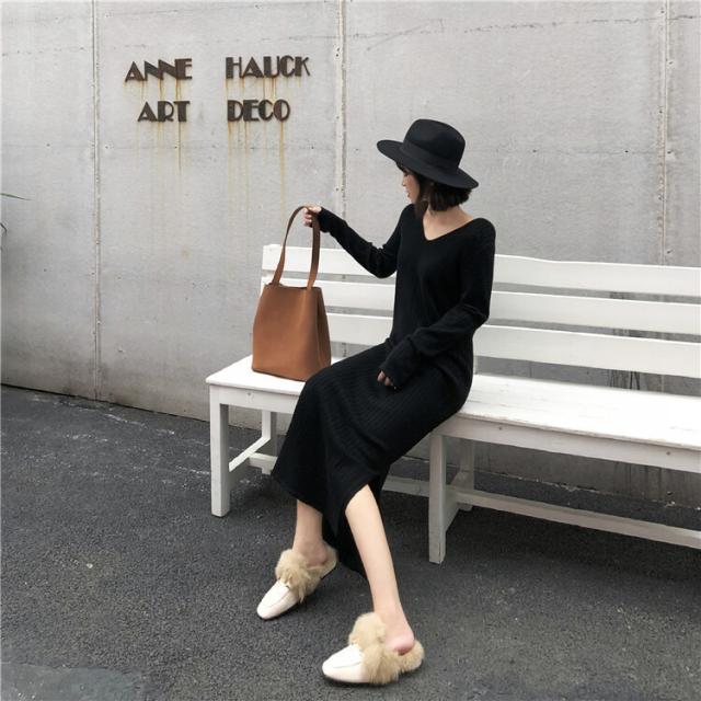 ニットワンピース スリット 秋冬 ロングワンピース レディース ロング丈 Vネック 色っぽ 細身 膝下 マキシワンピース マキシ丈 無地 シンプル 20代 30代 40代 50代 セクシー 大人可愛い カジュアル かわいい 着回し Iライン ストレート 美脚 細見え タイト
