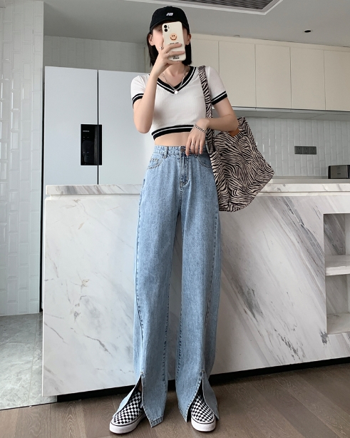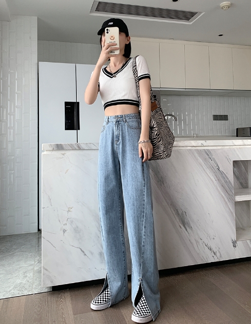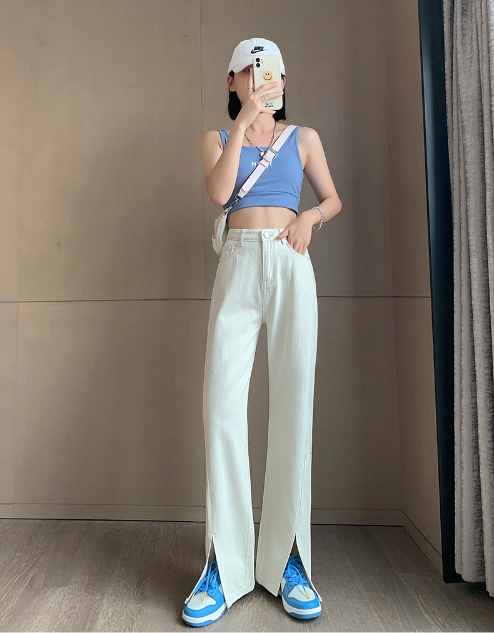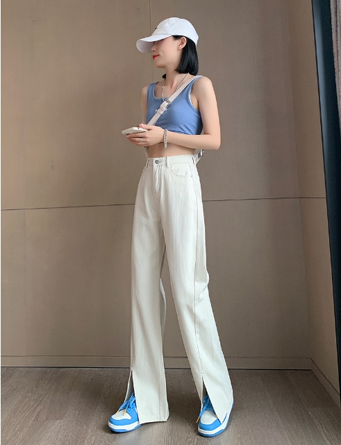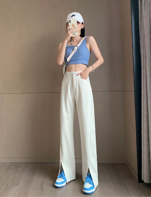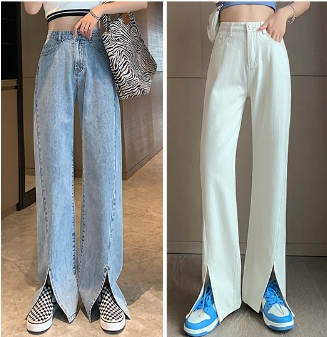 ボトムス パンツ Gパン デニムパンツ ストレート ワイド スリット ハイウエスト デニム きれいめ シンプル カジュアル かっこいい 大人女子 こなれ感 ラフ マニッシュ スポーティー ストリート 無地 春 夏 秋 10代 20代 30代 40代 レディース 女性用 ママ 女の子 学生 通学 公園デビュー お泊まり 休日 散歩 BBQ 着回し 普段使い 楽ちん 体系カバー 脚長 合わせやすい ワイドレッグ サイズ XS S M L XL 2XL 白 ライトブルー