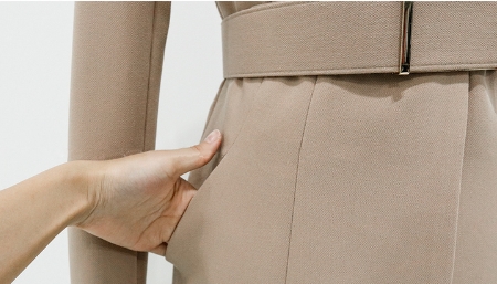 スカーフとベルト使いでシックに決まります