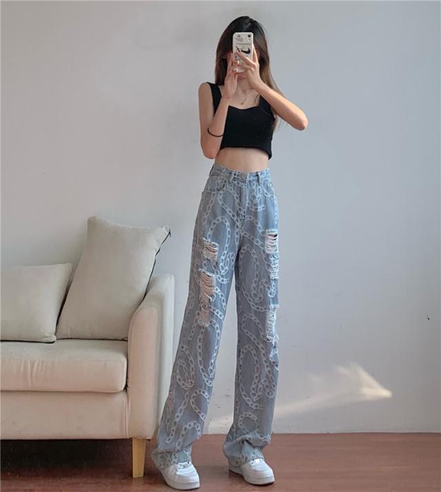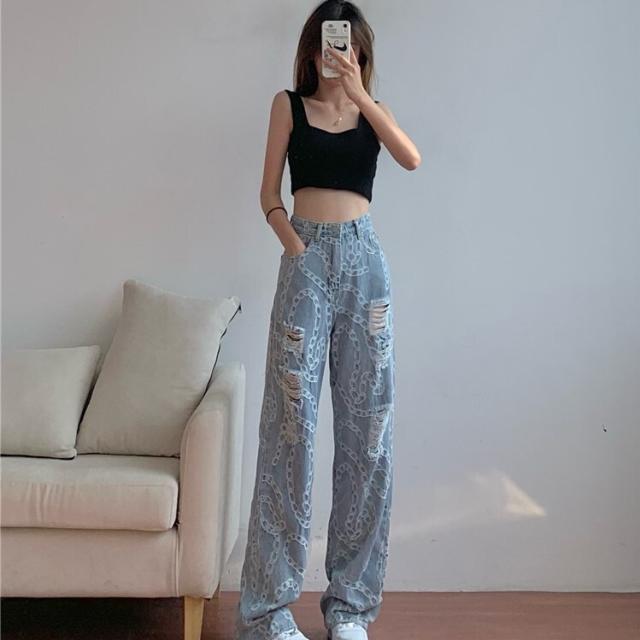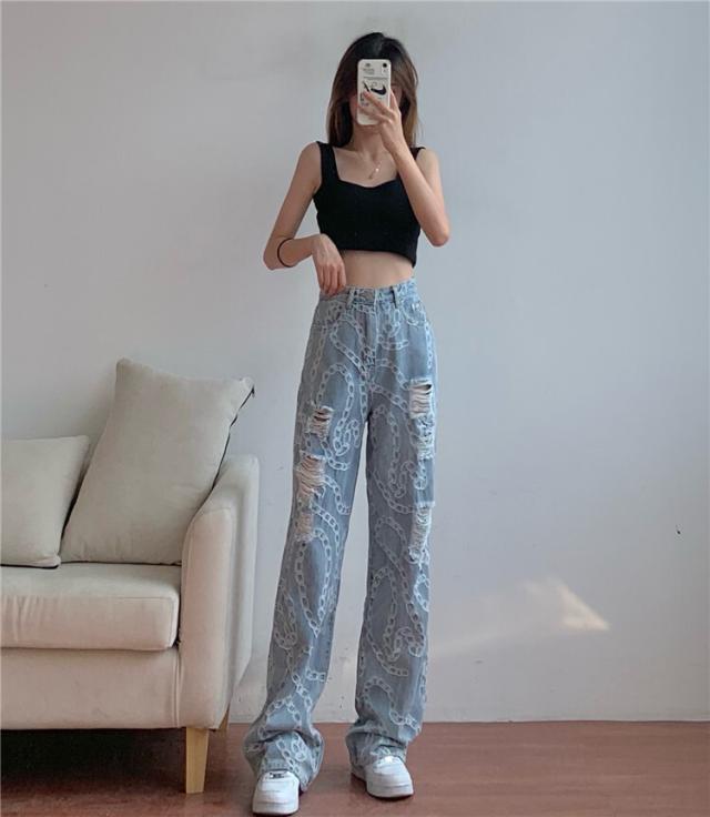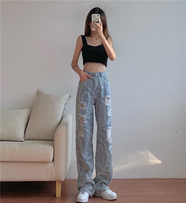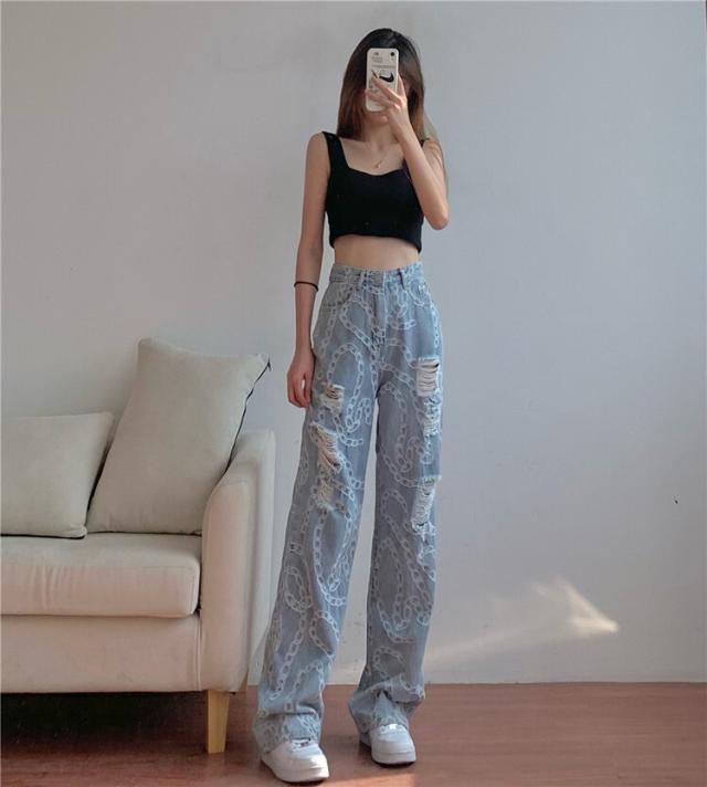 ボトムス Gパン ワイドパンツ ワイド デニム ブルーデニム シンプル カジュアル 薄手 お洒落 かっこいい ラフ メンズライク ボーイッシュ スポーティー 春 夏 10代 20代 30代 40代 レディース 女性用 ママ 公園デビュー 女子会 アウトドア リゾート 旅行 海 プール 高原 普段使い ファッション コーデ スタイル ダメージ 穴あき サイズ S M L XL ブルー