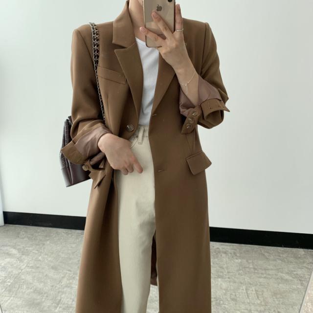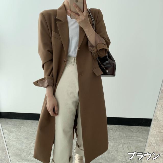 ジャケット レディース アウター ロングジャケット テーラードジャケット ライトアウター コート ロングコート S M L ブラウン 茶色 ブラック 黒 無地 秋 冬 長袖 襟付き テーラード ストレート ゆったり ゆる ルーズ 体型カバー 着やせ ロング丈 ロング ママ フェミニン ナチュラル カジュアル きれいめ きれカジ 大人 大人可愛い こなれ感 ぬけ感 デート 休日 お出かけ 学生 通学 存在感 クール スタイリッシュ マニッシュ メンズライク シック モード 上品 シンプル きちんと感 韓国