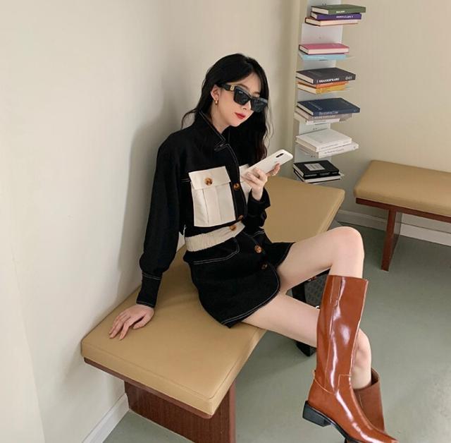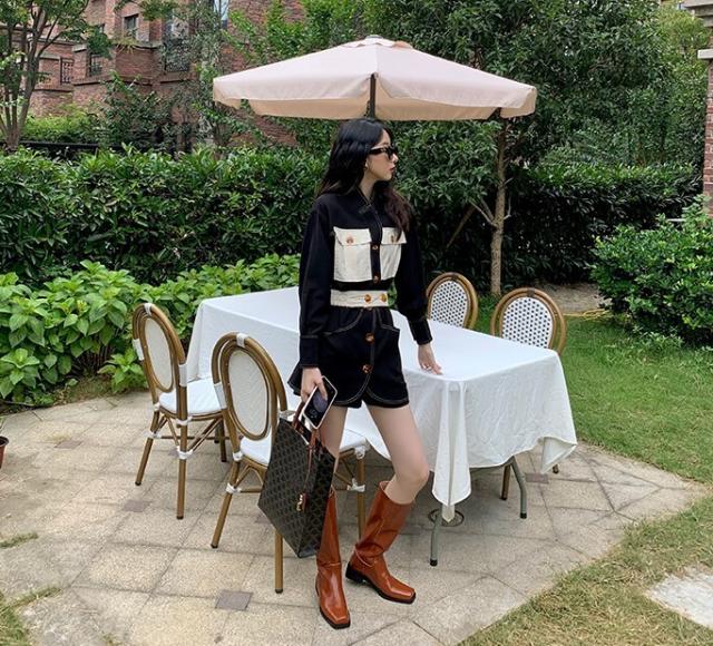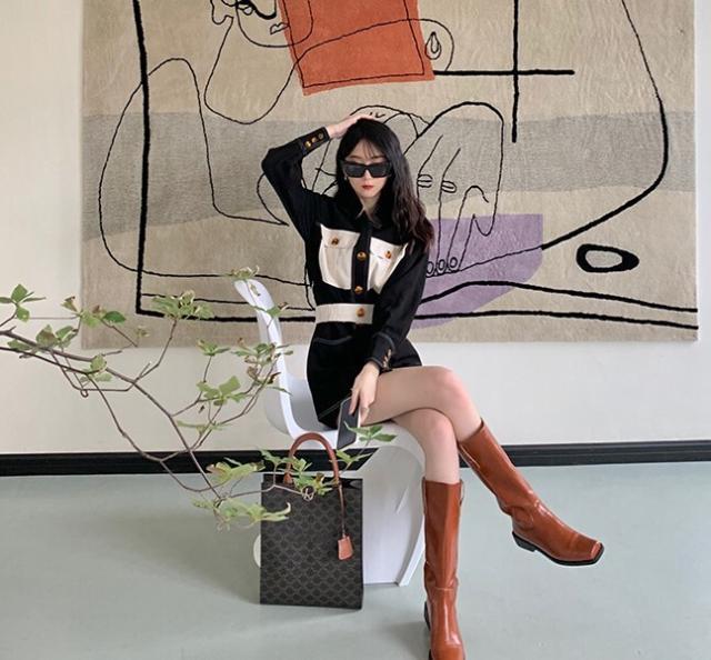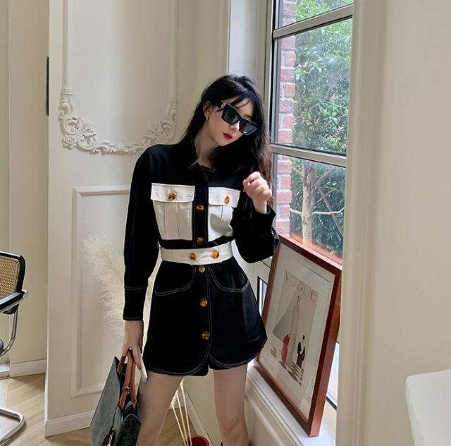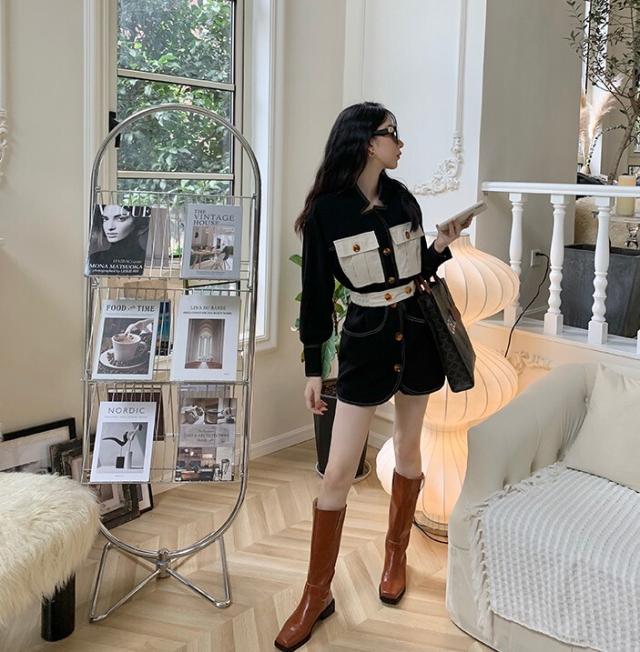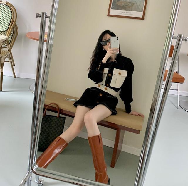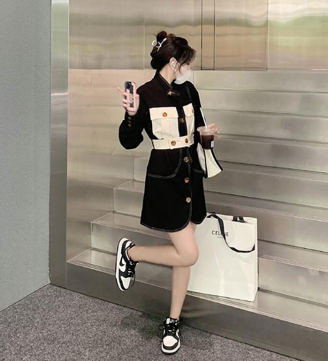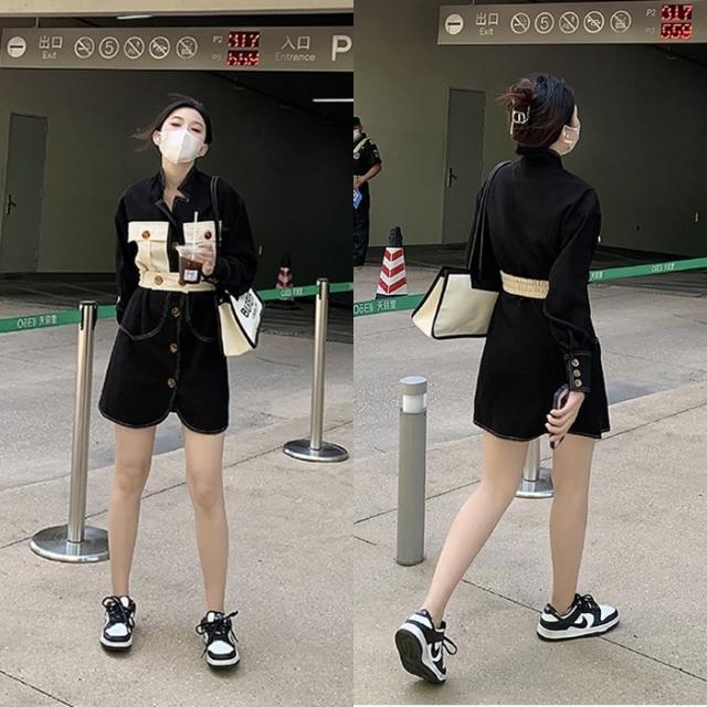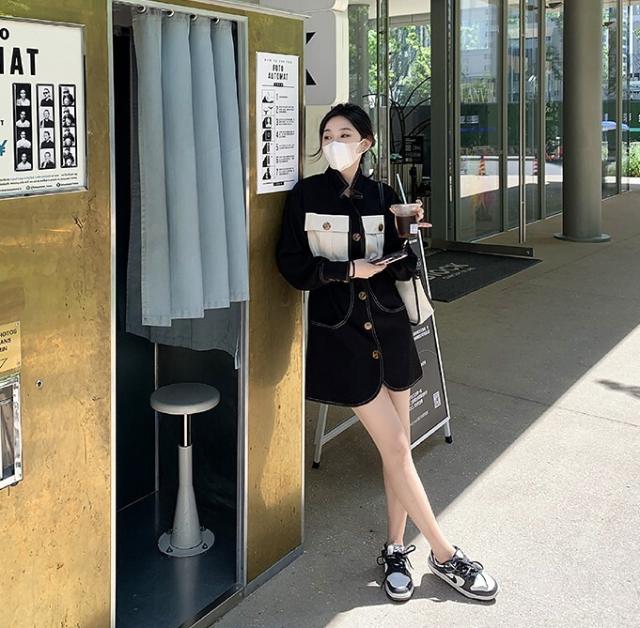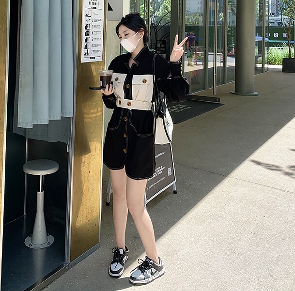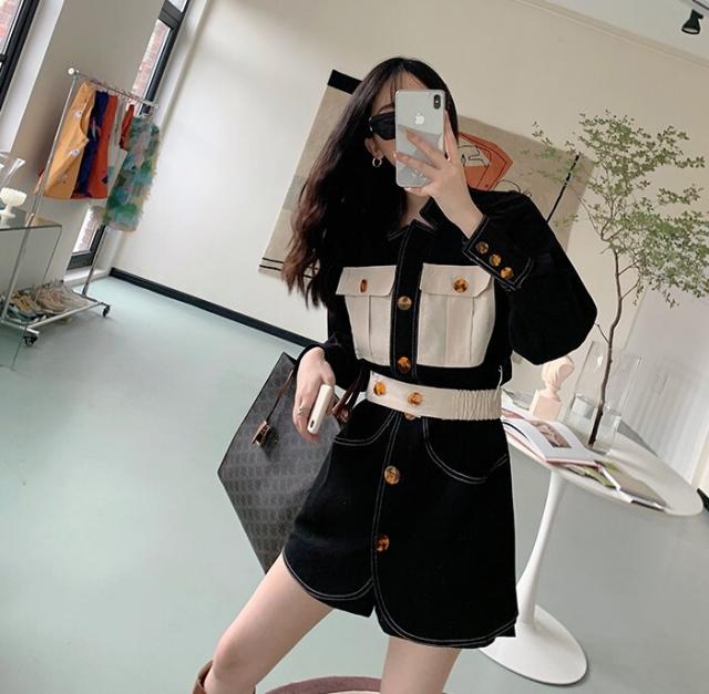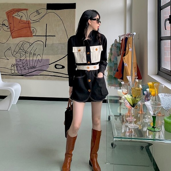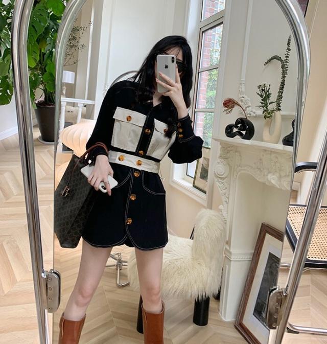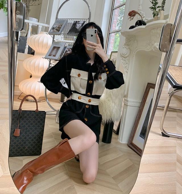 ワンピース レディース デニムワンピ シャツワンピ S M L デニム ステッチ バイカラー ブラック 黒 無地 春 秋 長袖 襟付き フロントボタン 胸ポケット ミニ丈 ミニ ショート丈 ショート 膝上 フレア Aライン ハイウエスト 脚長 美脚 スタイルアップ 着やせ フェミニン ナチュラル きれいめ きれカジ カジュアル キュート モテ ガーリー 大人 大人可愛い 存在感 主役級 こなれ感 ぬけ感 デート お出かけ 休日 デート 万能 着回し 個性 ユニーク スタイリッシュ クール 韓国 オルチャン