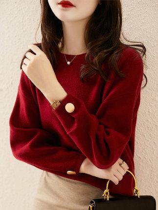 くすみレッドがおしゃれなニットセーターです。