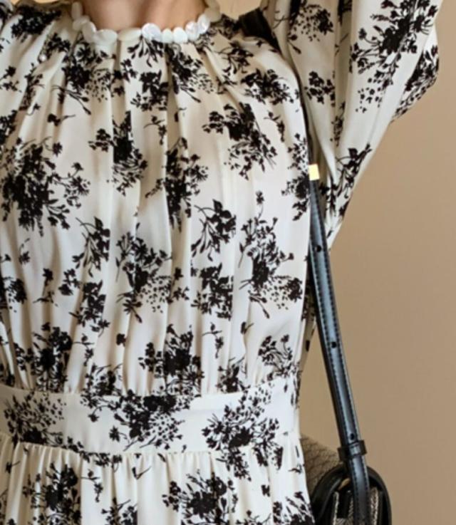 上品な花柄プリントが素敵なワンピース。