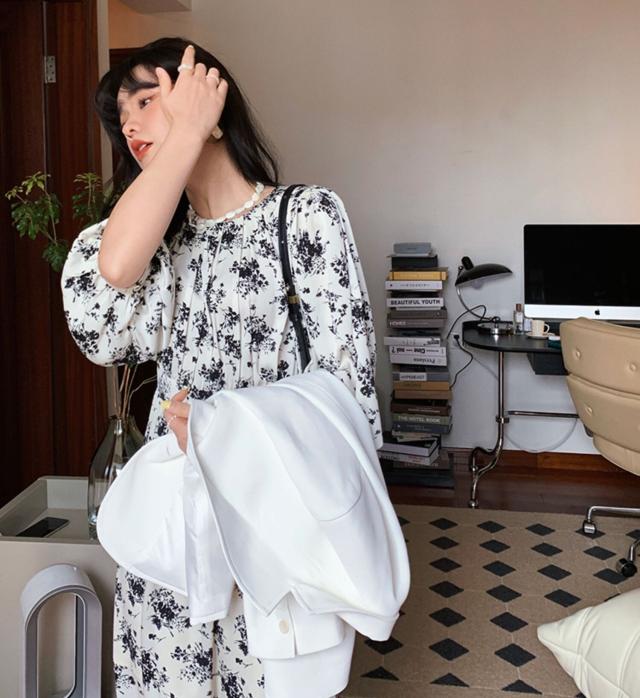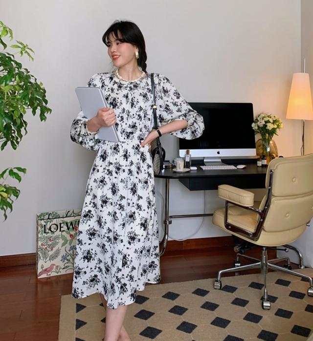 ワンピース レディース 花柄ワンピース フレアワンピース ミディワンピース XS S クリーミーアプリコット 花柄 フラワー フローラル 春 秋 長袖 パフスリーブ ミドル丈 ミドル ミディ丈 ミディ 膝丈 フレア Aライン ハイウエスト 脚長 美脚 体型カバー 着やせ スタイルアップ フェミニン きれいめ きれカジ カジュアル ナチュラル 上品 エレガント さわやか 華やか きちんと感 清潔感 清楚 大人 大人可愛い 存在感 主役級 こなれ感 ぬけ感 デート お出かけ 休日 お呼ばれ 韓国 オルチャン