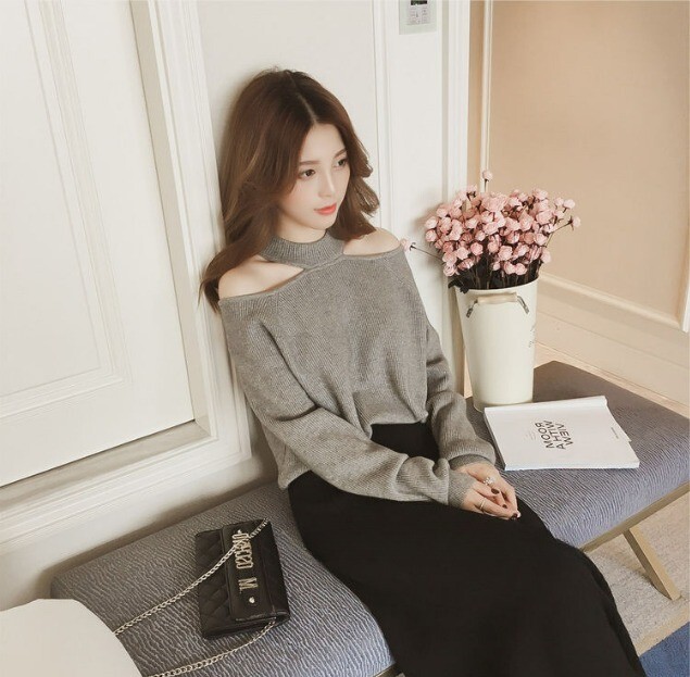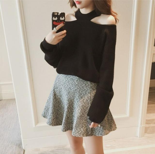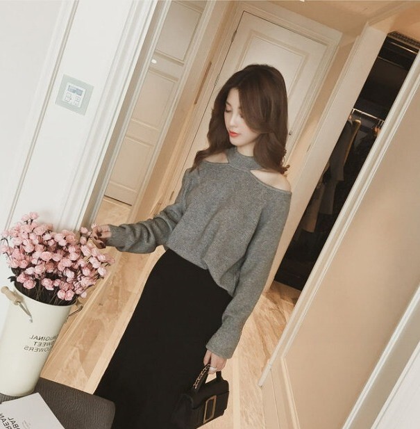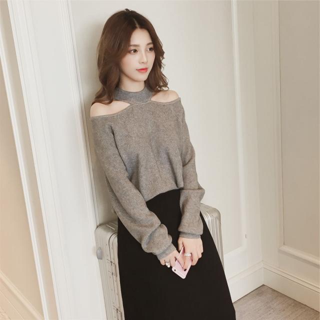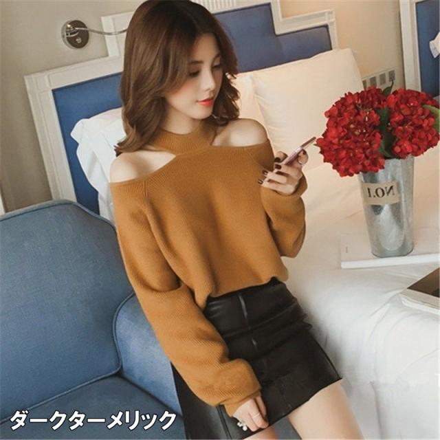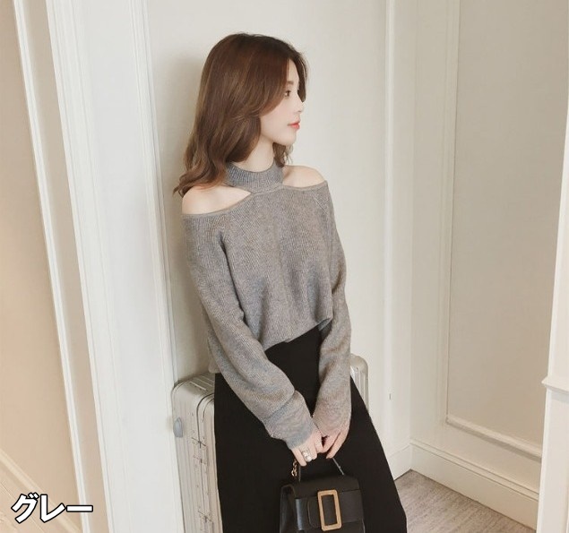 ニット レディース ホルターネック ニットトップス オープンショルダー ハイゲージ ヘルシー肌見せ S M L XL グレー 灰色 ブラック 黒 ブラウン 茶色 無地 大人カラー 秋カラー 秋 冬 長袖 ママ フェミニン ナチュラル カジュアル きれいめ きれカジ 大人 大人可愛い こなれ感 ぬけ感 存在感 主役級 休日 お出かけ デート コンパクト ショート丈 シンプル 上品 エレガント エレガンス 個性 ガーリー モテ キュート 定番 万能 着回し 学生 通学 韓国 オルチャン 10代 20代