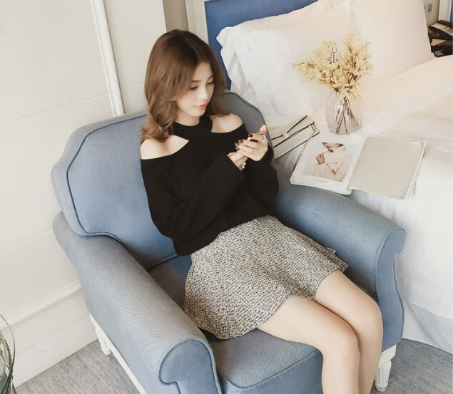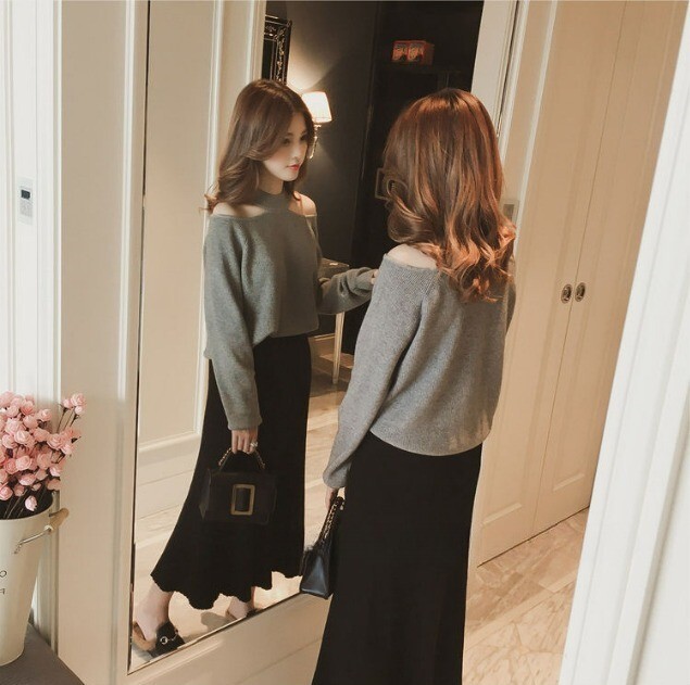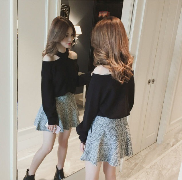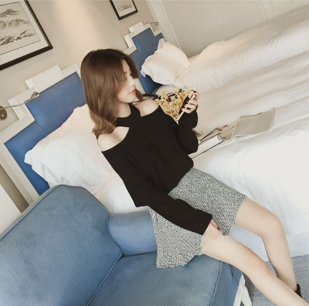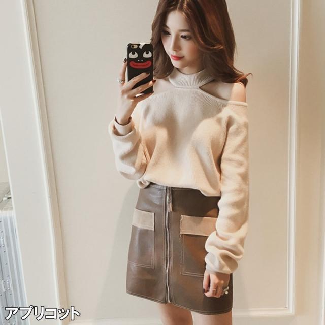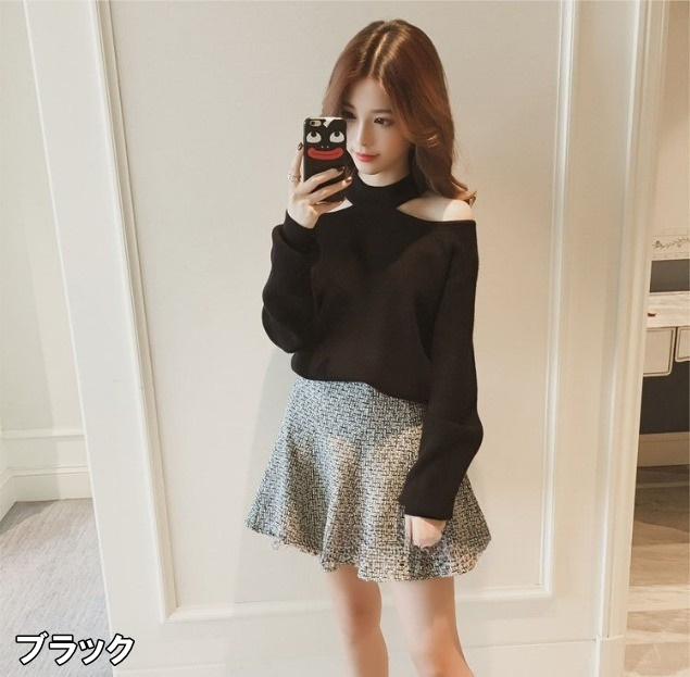 オープンショルダーデザインが素敵なニット。