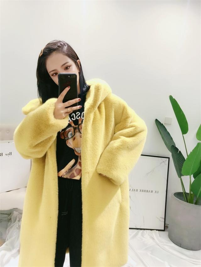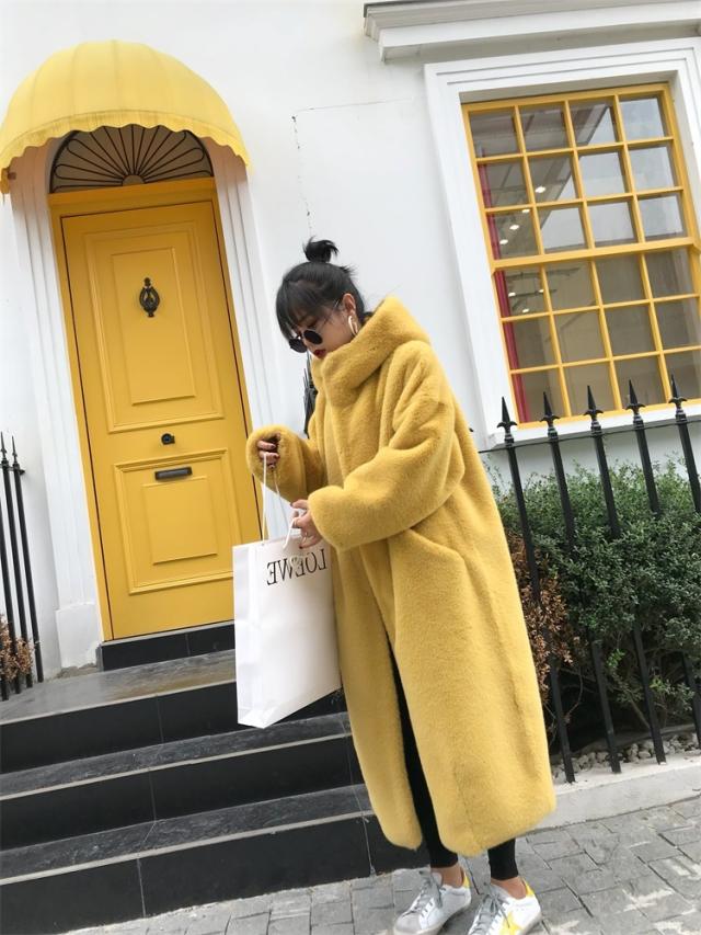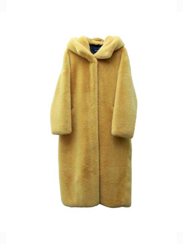 アウター レディース コート 上着 もこもこアウター フェイクファーコート ロング丈 袖あり フーディ フード付き Iライン モコモコ ふわふわ 前開き ボア かわいい こなれ感 ラフ 主役級 存在感 XS S M L XL 2XL 小さいサイズ 大きいサイズ ゆったり ルーズ ピンク イエロー