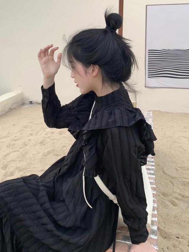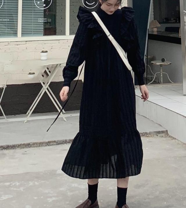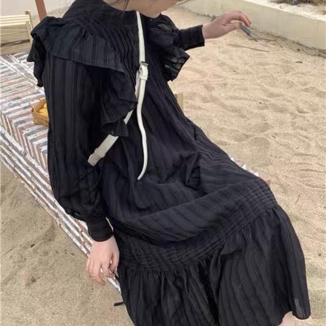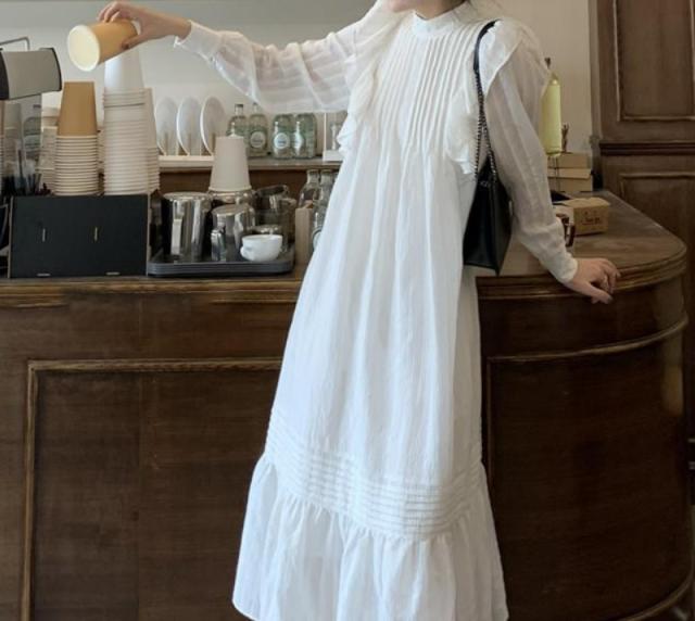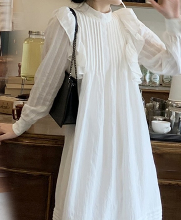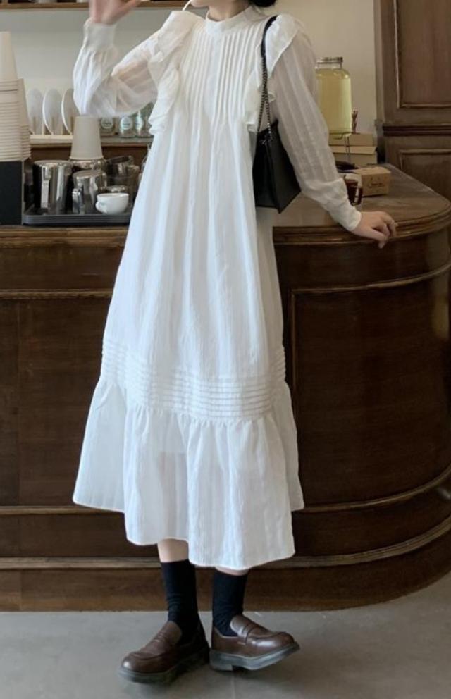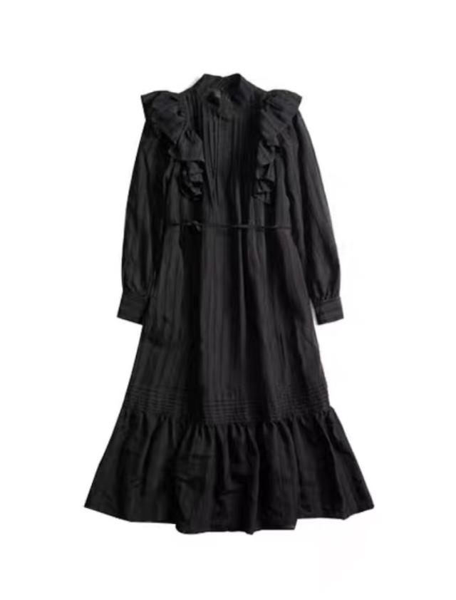 ラッフルフリル ドレス ロング丈 Aライン ティアード おしゃれ 肩フリル かわいい たっぷりフリル シャツワンピ チュニック ラブリー カジュアル シーズンレス レディース フレンチガーリー スタイルアップ ロマンティックコーデ ゆったり 無地 ホワイト ブラック