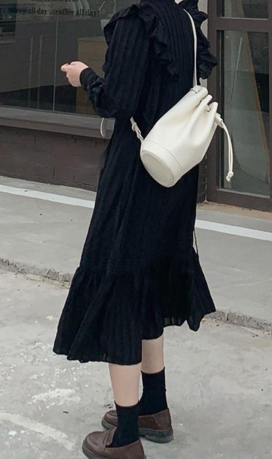 大きな肩フリルで華奢見え