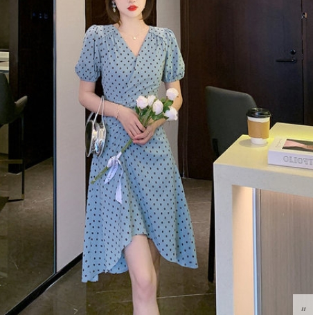 ワンピース レディース ミニワンピース 春 夏 半袖 パフスリーブ Vネック ウエストシェイプ ミニ丈 ミドル ミディ丈 ミディ 膝丈 フレア Aライン ハイウエスト 脚長 美脚 二の腕カバー 着やせ スタイルアップ フェミニン きれいめ きれカジ カジュアル ナチュラル 上品 エレガント さわやか きちんと感 清潔感 清楚 大人 大人可愛い 存在感 主役級 こなれ感 ぬけ感 デート お出かけ 休日 お呼ばれ シンプル 定番 万能 王道 韓国 オルチャン S M L XL ブルー イエロー ドット