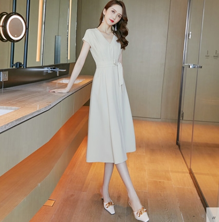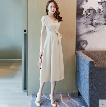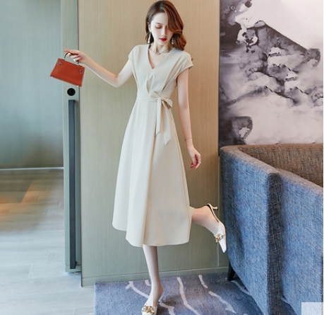 ワンピース レディース 春 夏 半袖 フレンチスリーブ Vネック ウエストシェイプ ワンピース ひざ下丈 ミドル ミディ丈 ミディ 膝丈 フレア Aライン ハイウエスト 脚長 美脚 二の腕カバー 着やせ スタイルアップ フェミニン きれいめ きれカジ カジュアル ナチュラル 上品