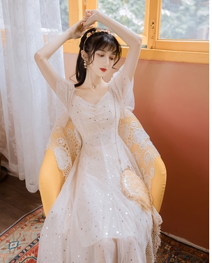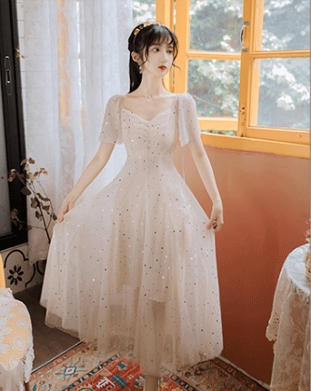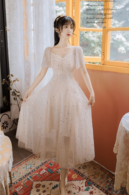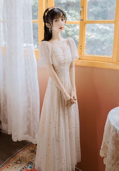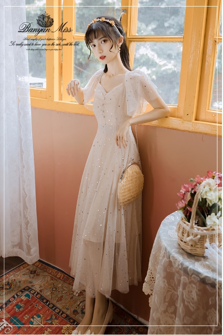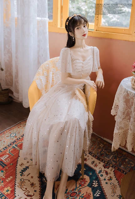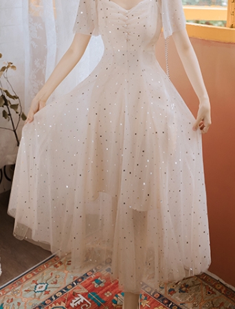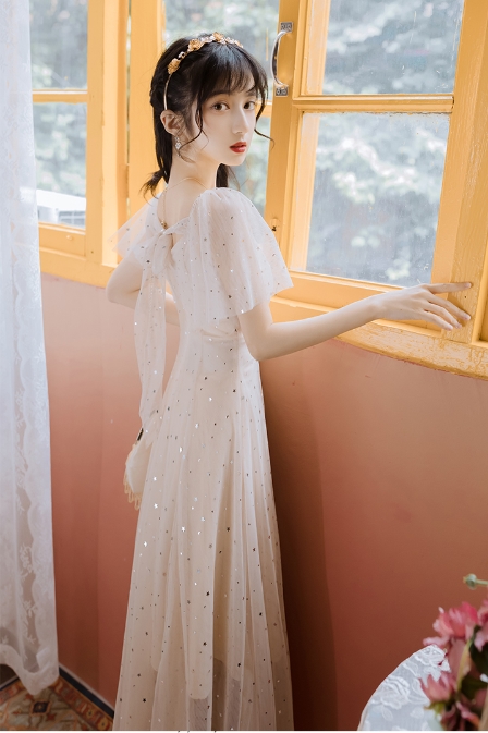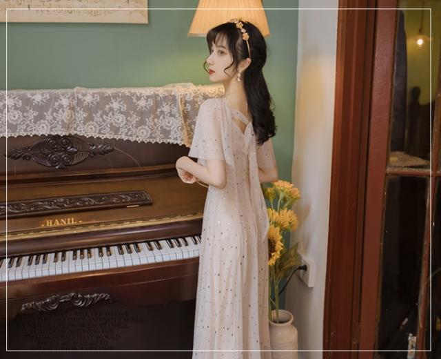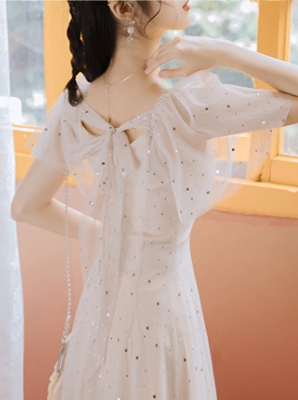 まるで妖精のような星を散りばめたシフォンのワンピース