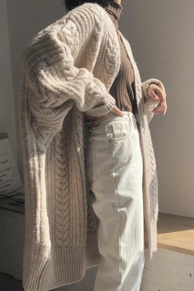 ニットガウン アウター カーディガン ガウン もこもこアウター 長袖 ドルマンスリーブ もこもこ モコモコ ケーブルニット 伸縮性 大人可愛い きれいめ シンプル カジュアル おしゃれ こなれ感 ラフ ガーリー 無地 秋 冬 デート 休日 着回し 楽ちん 暖かい 防寒 ゆったり