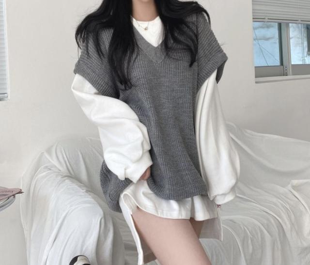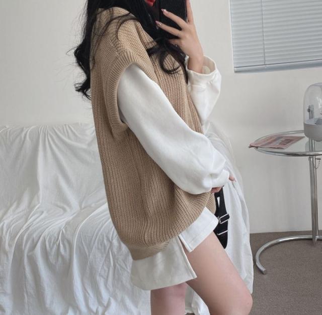 ルーズなシルエットがかわいいトップスとベストのセット。