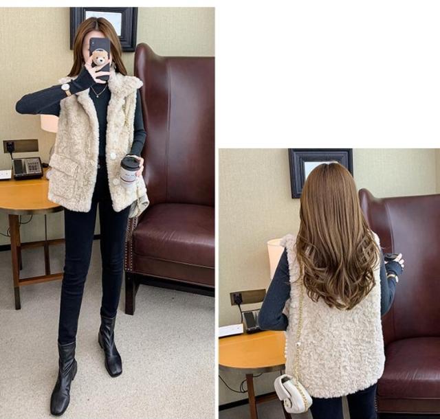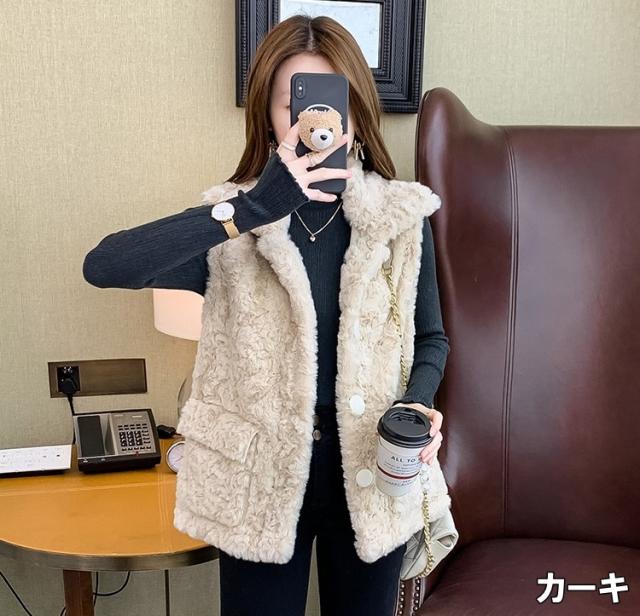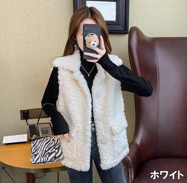 ベスト レディース トップス ファーベスト ファー もこもこ ふわふわ ホワイト 白 カーキ 大人カラー くすみカラー 秋カラー S M L XL 襟付き 袖なし レイヤード 重ね着 無地 ボタン ポケット 秋 冬 ロング丈 ミドル丈 フェミニン カジュアル ナチュラル きれいめ きれカジ
