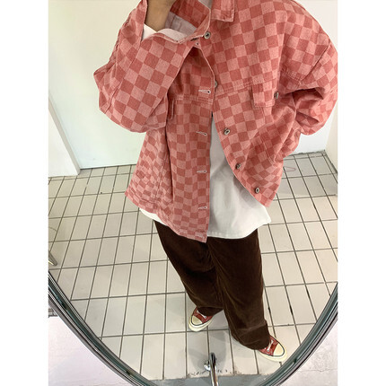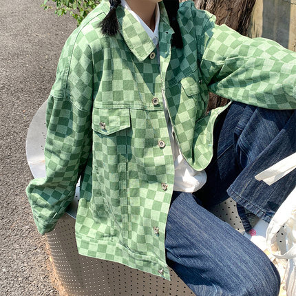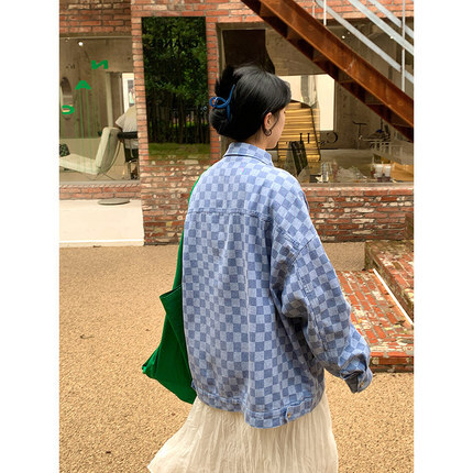 春秋 デニム ジャケット トップス ジャケット 上着 ミディアム丈 ミドル丈 袖あり 長袖 Vネック 襟付き ポケット 前開き デニム かわいい 大人可愛い カジュアル 大人 かっこいい レトロ ラフ ボーイッシュ ルーズ フォーマル チェック柄 春 秋 10代 20代 レディース 女性用