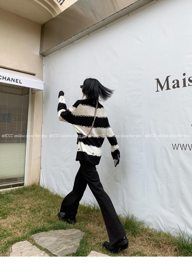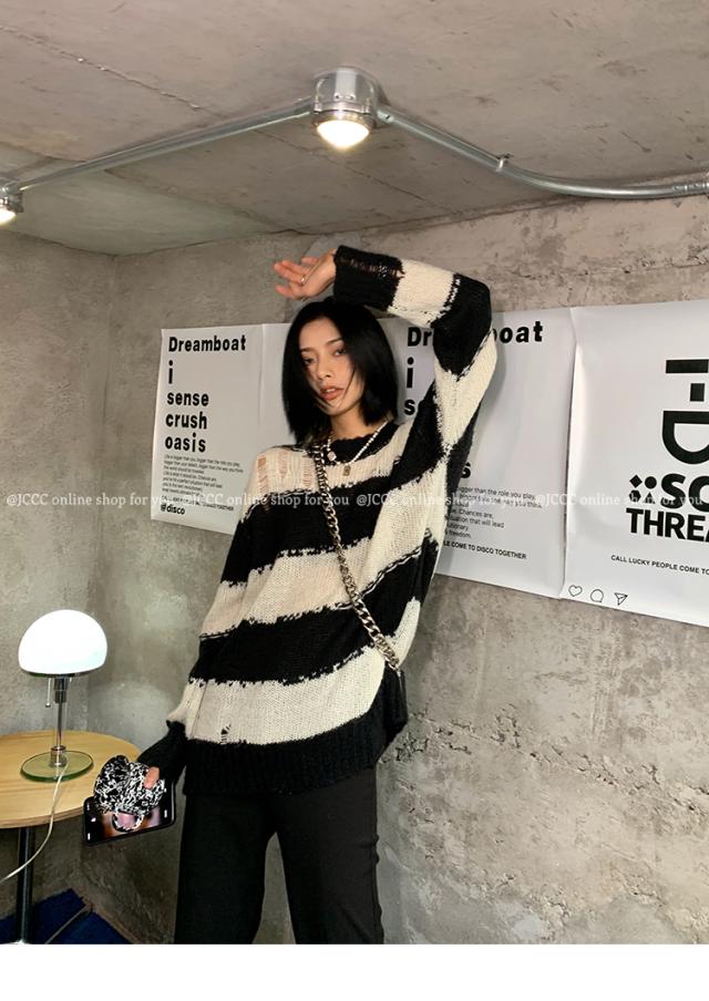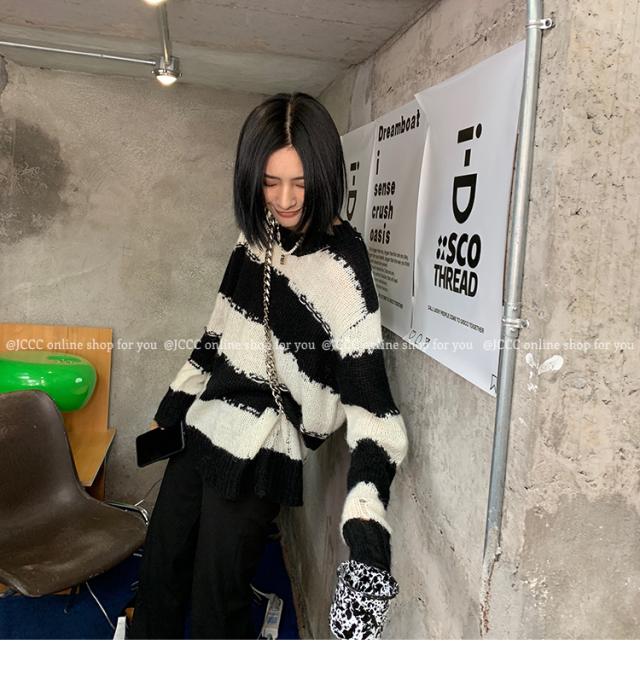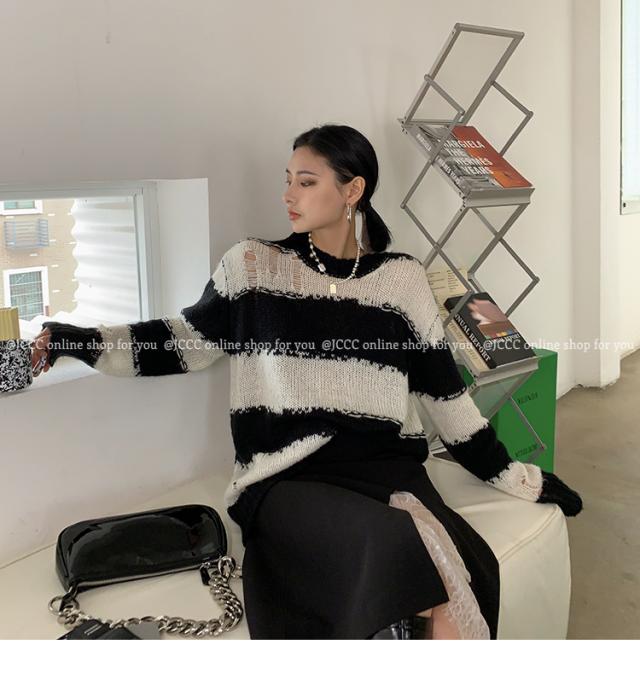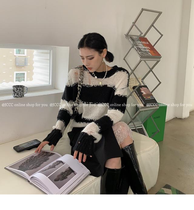 秋 セーター ストライプ トップス セーター プルオーバー 上着 ミディアム丈 ミドル丈 袖あり 長袖 襟なし ストレート 編み込み アクリル 大人可愛い きれいめ 大人 かっこいい 大人女子 ラフ ボーイッシュ スポーティー ストライプ 秋 20代 30代 レディース 女性用 ママ OL 学生 デート お出かけ お泊まり 休日 アウトドア パーティー イベント リゾート 旅行 ガーデン 着回し 普段使い 重ね着 暖かい モテ 穴あき インスタ映え M ゆる 黒白ストライプ
