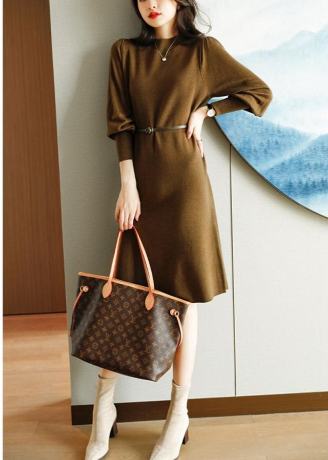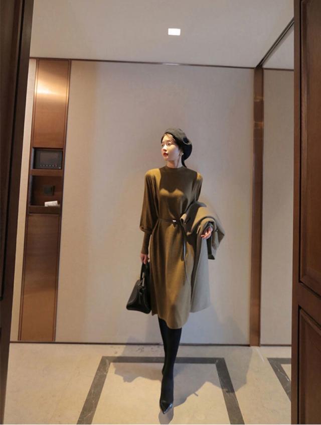 ロングカフスニットがおしゃれでトレンドなニットワンピースです。