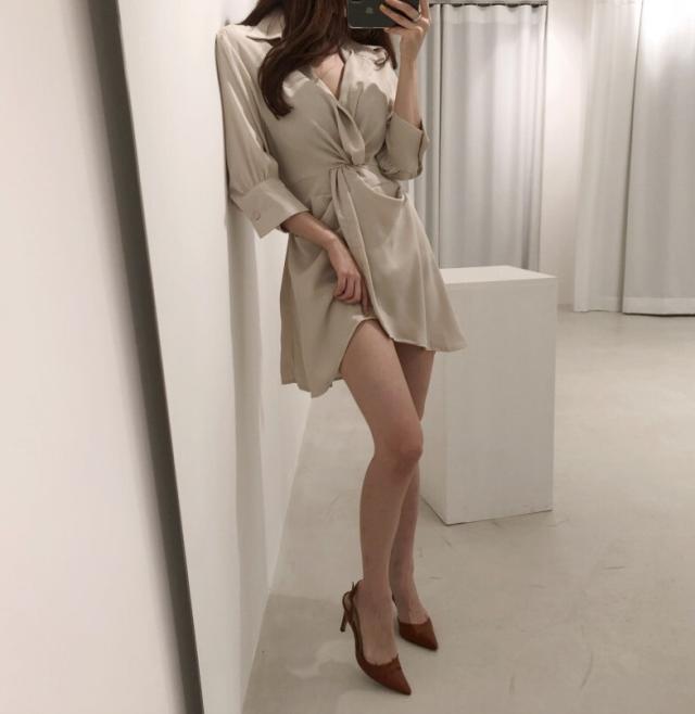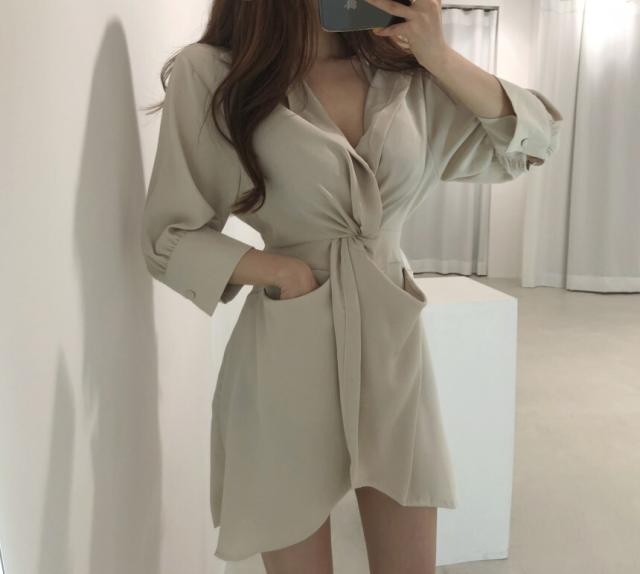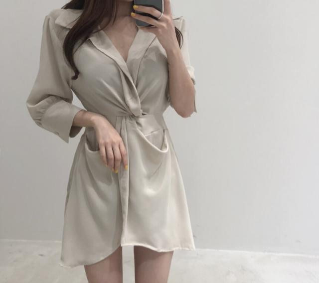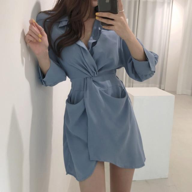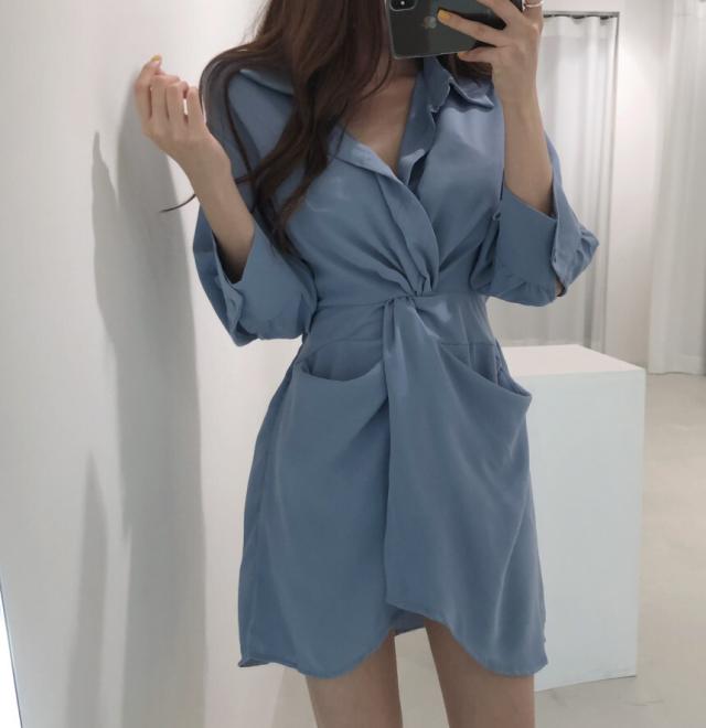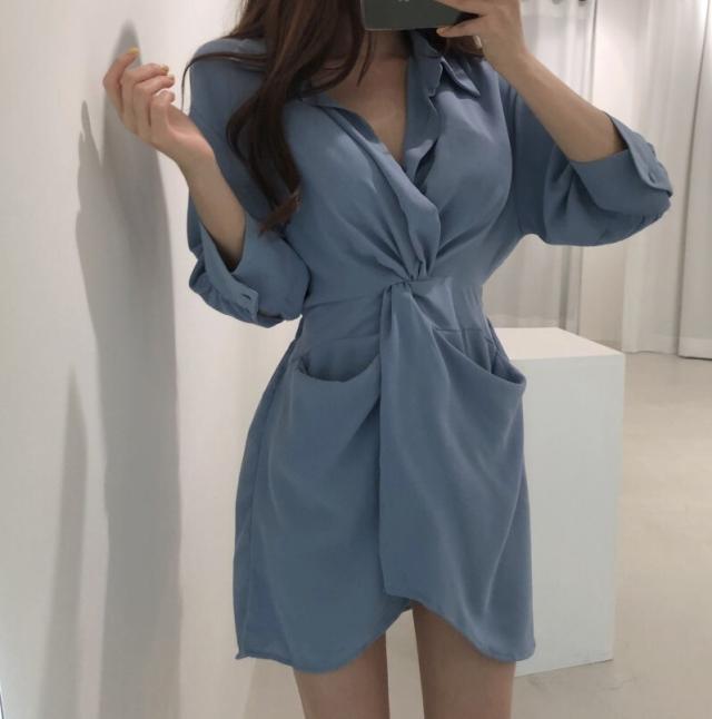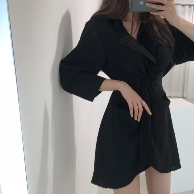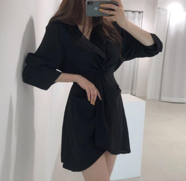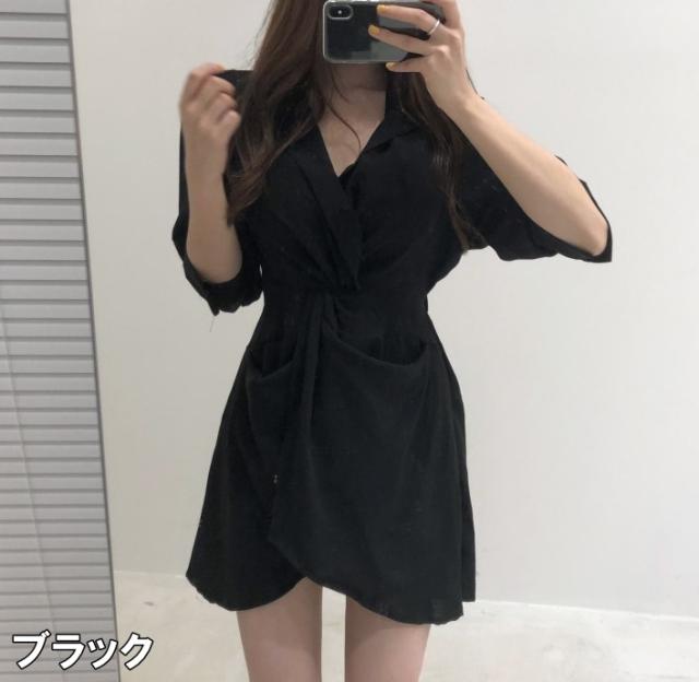 ワンピース レディース シャツワンピース ワンサイズ フリーサイズ ブラック 黒 ブルー 青 ベージュ 無地 アシンメトリー 春 夏 7分袖 七分袖 Vネック 襟付き ミニ丈 ミニ ショート丈 ショート 膝上 フレア Aライン ハイウエスト 体型カバー 着やせ スタイルアップ マリン ママ フェミニン きれいめ きれカジ カジュアル ナチュラル 上品 エレガント キュート ガーリー モテ 定番 着回し 王道 万能 大人 大人可愛い 存在感 主役級 こなれ感 ぬけ感 デート お出かけ 休日 韓国 オルチャン