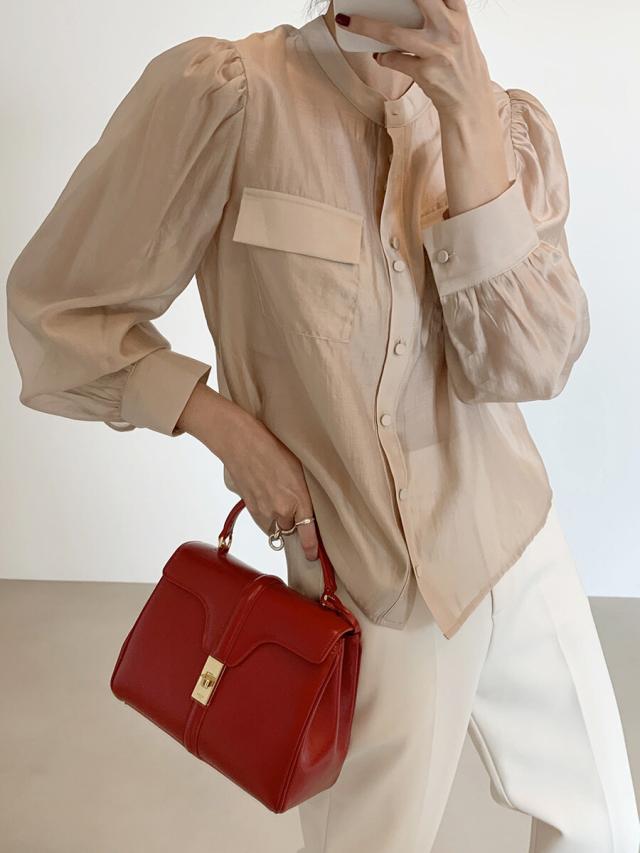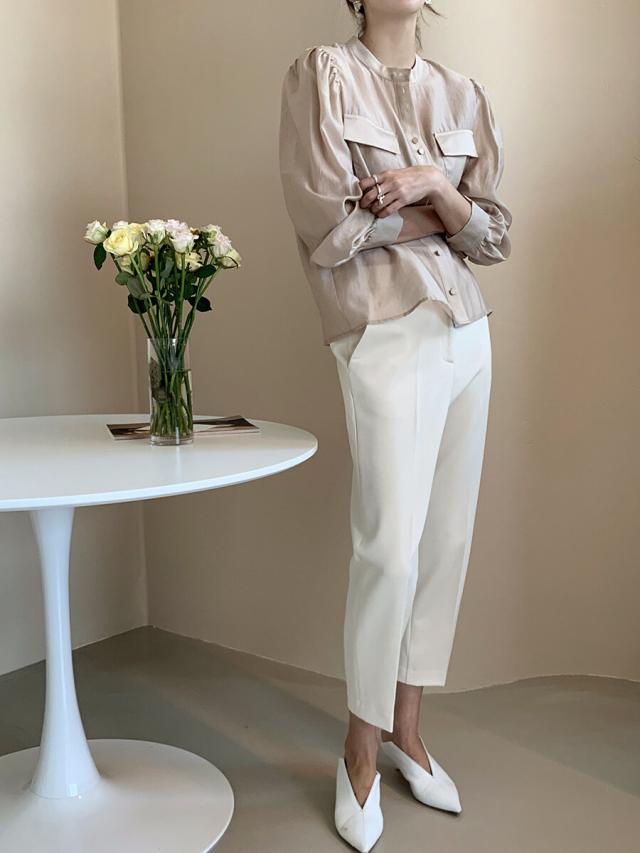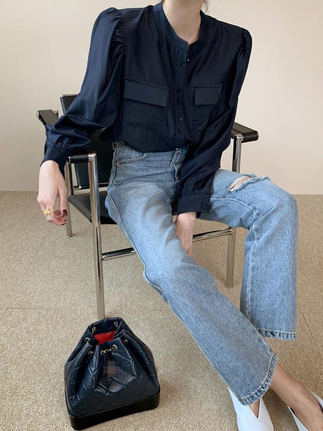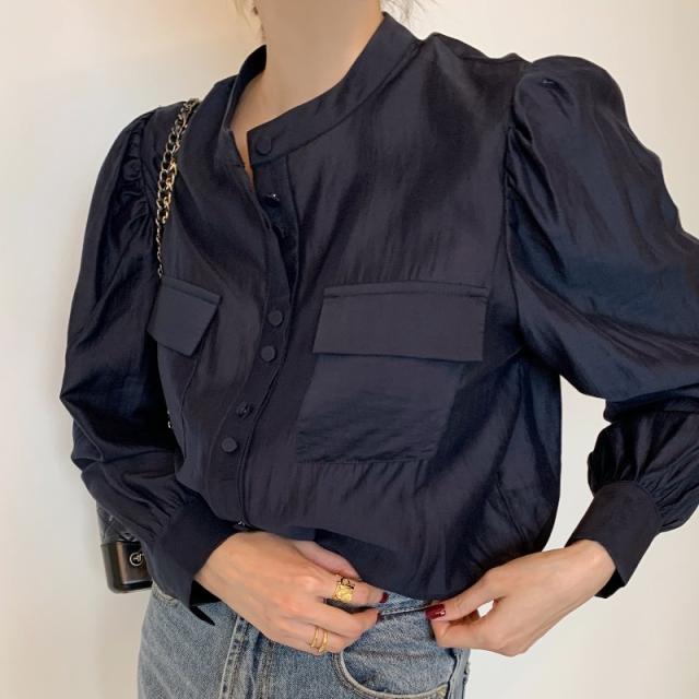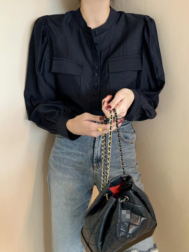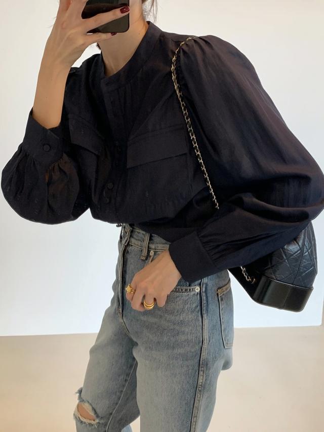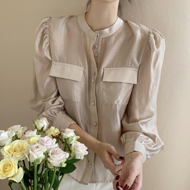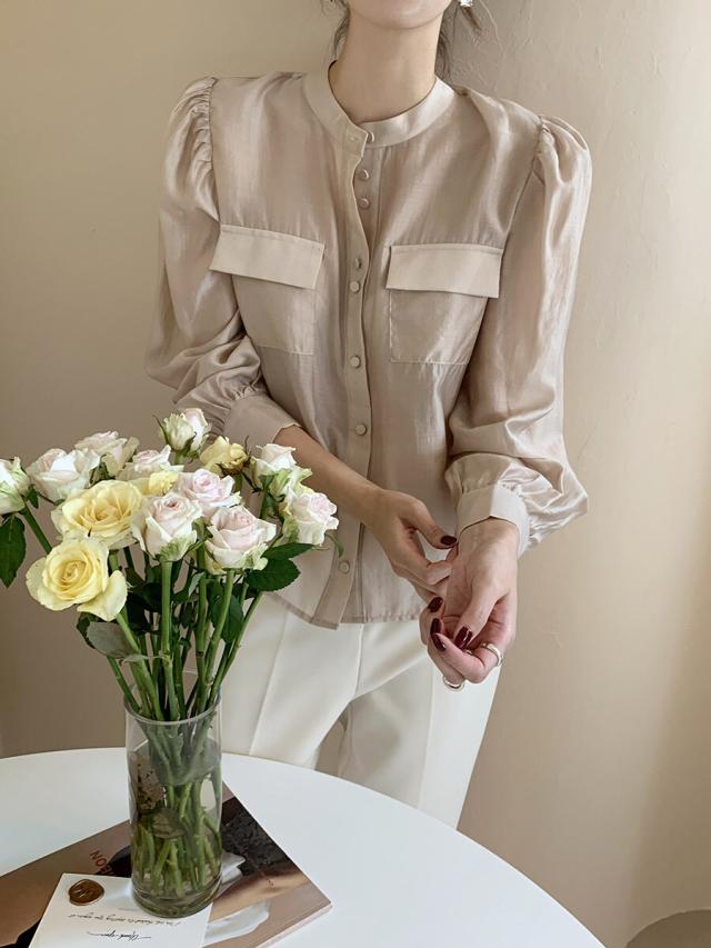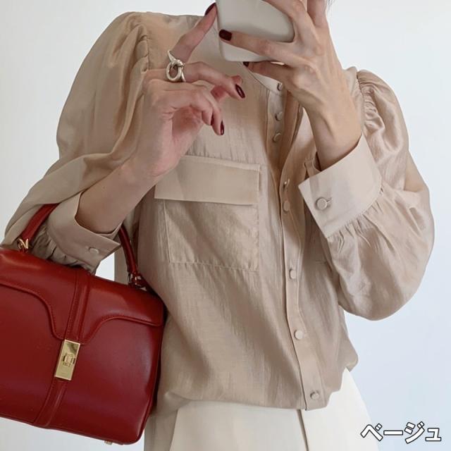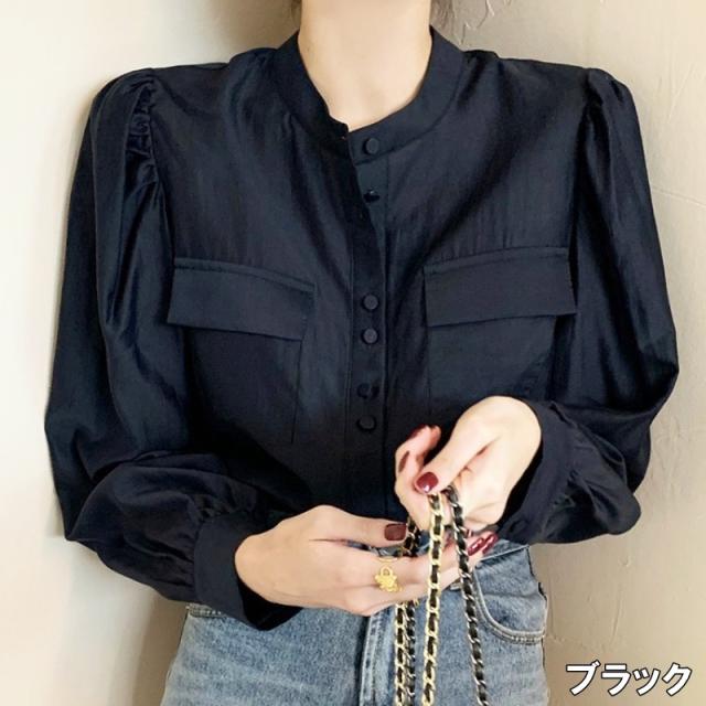 ブラウス レディース トップス シャツ ワンサイズ フリーサイズ ブラック 黒 ベージュ 無地 サテン 光沢感 春 秋 長袖 胸ポケット ノーカラー バンドカラー フェミニン ナチュラル カジュアル きれいめ きれカジ 大人 大人可愛い こなれ感 ぬけ感 存在感 主役級 休日 お出かけ デート お呼ばれ ストレート ショート丈 ショート シンプル ベーシック きちんと感 清潔感 さわやか クール モード スタイリッシュ 定番 万能 着回し 王道 通学 学生 通勤 オフィス OL 韓国 オルチャン 30代