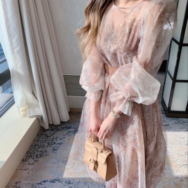 ボリューミーなシアースリーブが素敵なドレス。