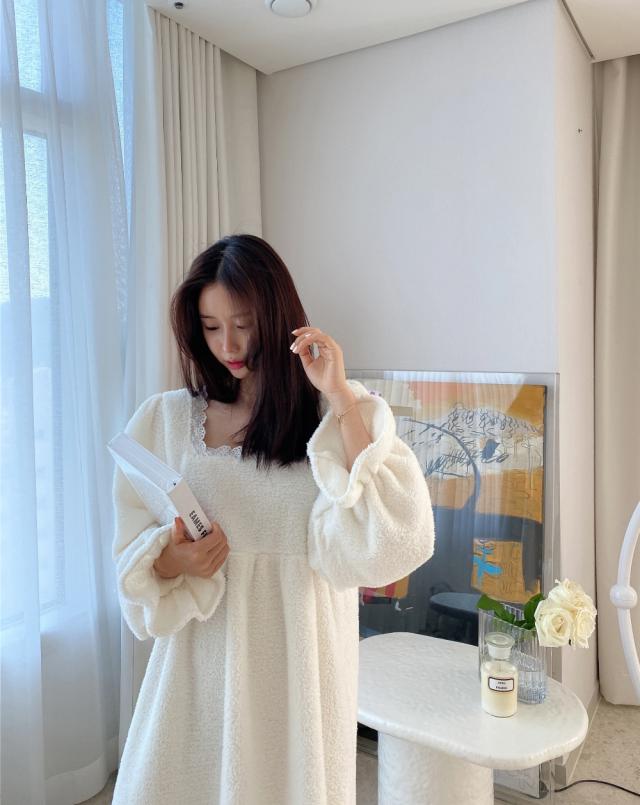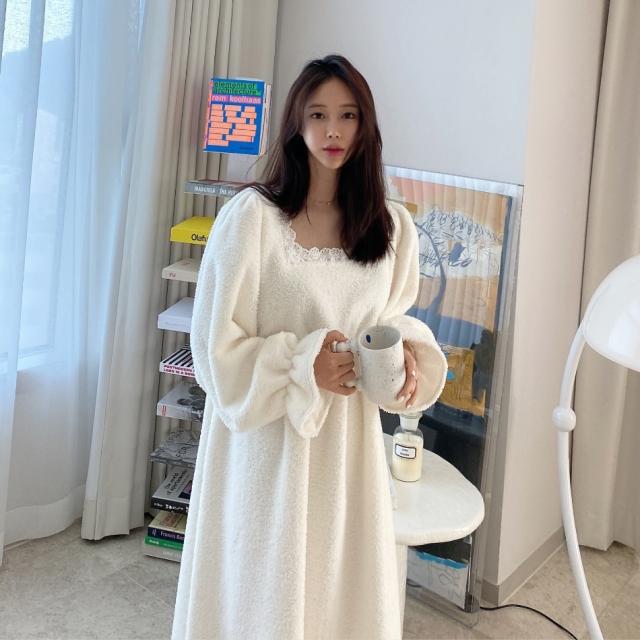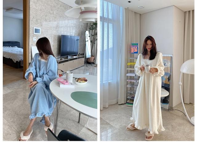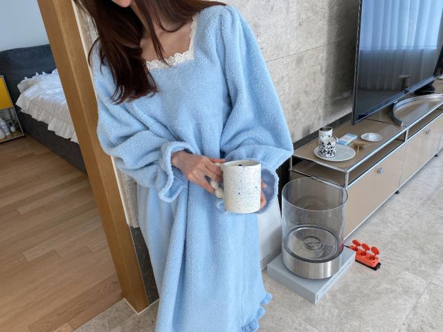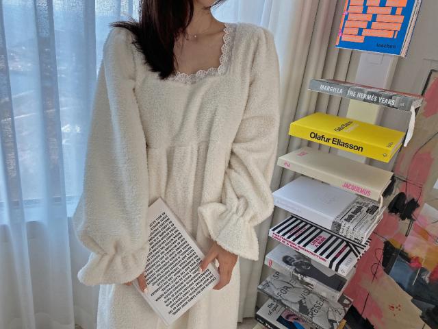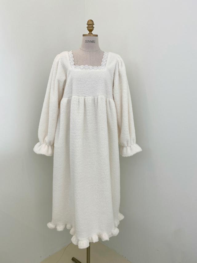 もこもこ ルームウェア パジャマ ゆったり 姫袖 ふわふわ レディース 脚長 Aライン ギャザー 甘め フリル レース スクエアネック 姫 量産型 20代 30代 40代 50代 大きいサイズ 大きめ お泊り デート ロング丈 ロングワンピース 韓国 秋 冬 暖かい 可愛い かわいい 大人女子 大人可愛い ゆめかわいい フリフリ