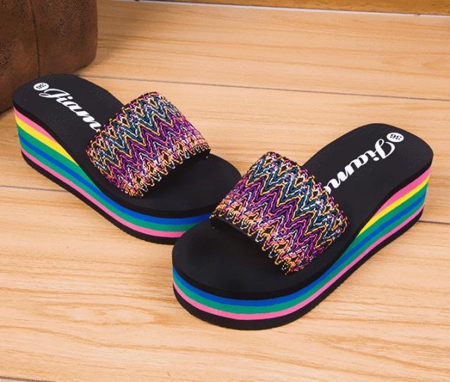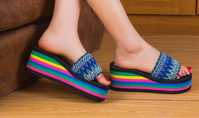 レインボーの厚底が素敵なサンダル。