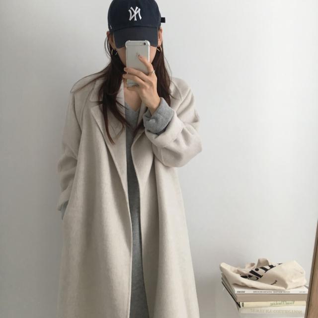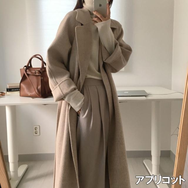 ロングコート レディース アウター コート ワンサイズ フリーサイズ ホワイトグレー 白 灰色 アプリコット ブラウン 茶色 フードなし ベルト付き テーラード 襟付き ウエストベルト ハイウエスト 脚長 ロング丈 ロング アンクル丈 冬 防寒 防風 あったか フェミニン ナチュラル カジュアル きれいめ きれカジ クール スタイリッシュ 定番 万能 着回し 王道 シンプル ベーシック ストレート ゆったり ゆる ルーズ オーバーサイズ 休日 デート お出かけ 通勤 OL 通学 学生 韓国 オルチャン