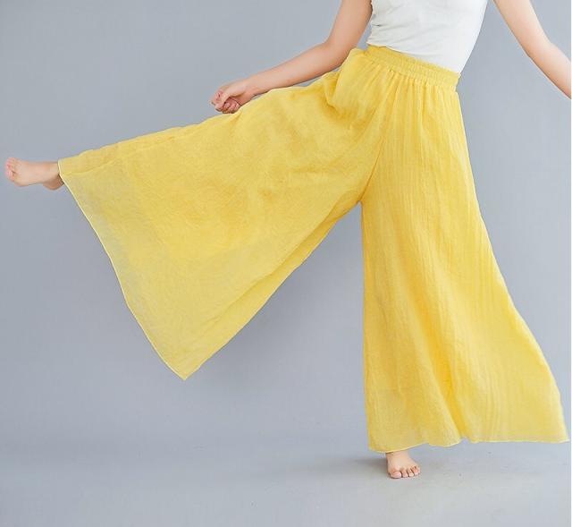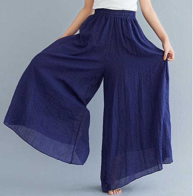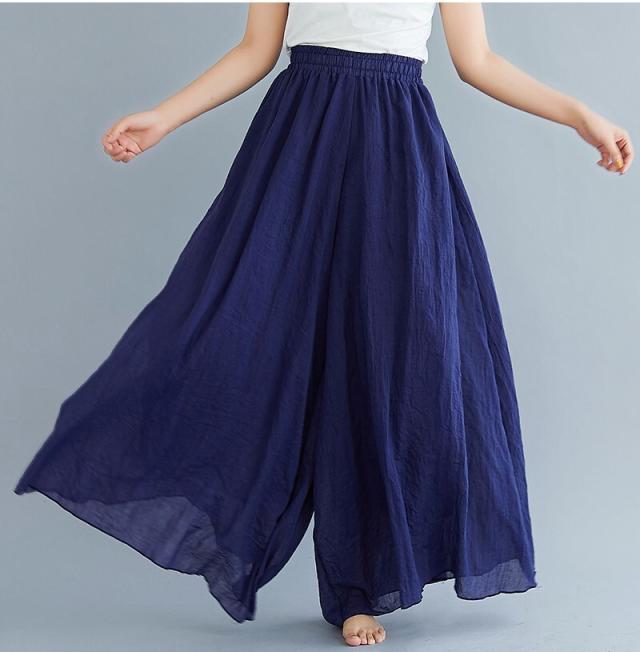 パンツ レディース フレアパンツ ガウチョパンツ ワイドパンツ コットンリネンパンツ 85cm 95cm ウエストゴム ブルー 青 パープル 紫 ピンク イエロー 黄色 ネイビー 紺 ベージュ 大人カラー パステルカラー フレア ワイド ふんわり ルーズ ゆったり ロング丈 ロング アンクル丈 マキシ丈 フェミニン カジュアル ナチュラル きれいめ きれカジ 定番 王道 万能 着回し シンプル ベーシック 学生 通学 休日 お出かけ デート 大人 大人可愛い こなれ感 ぬけ感 存在感 主役級 韓国 リネン