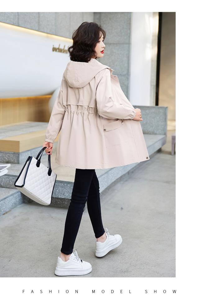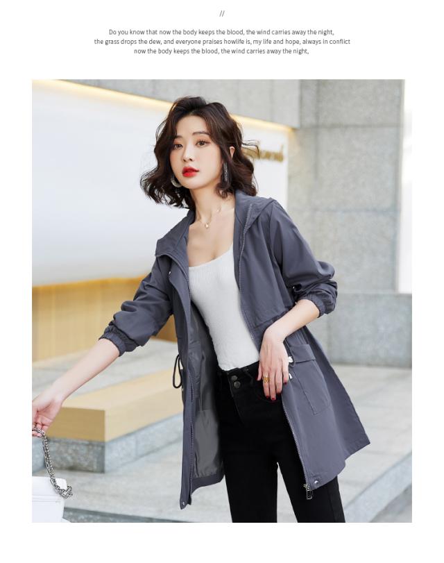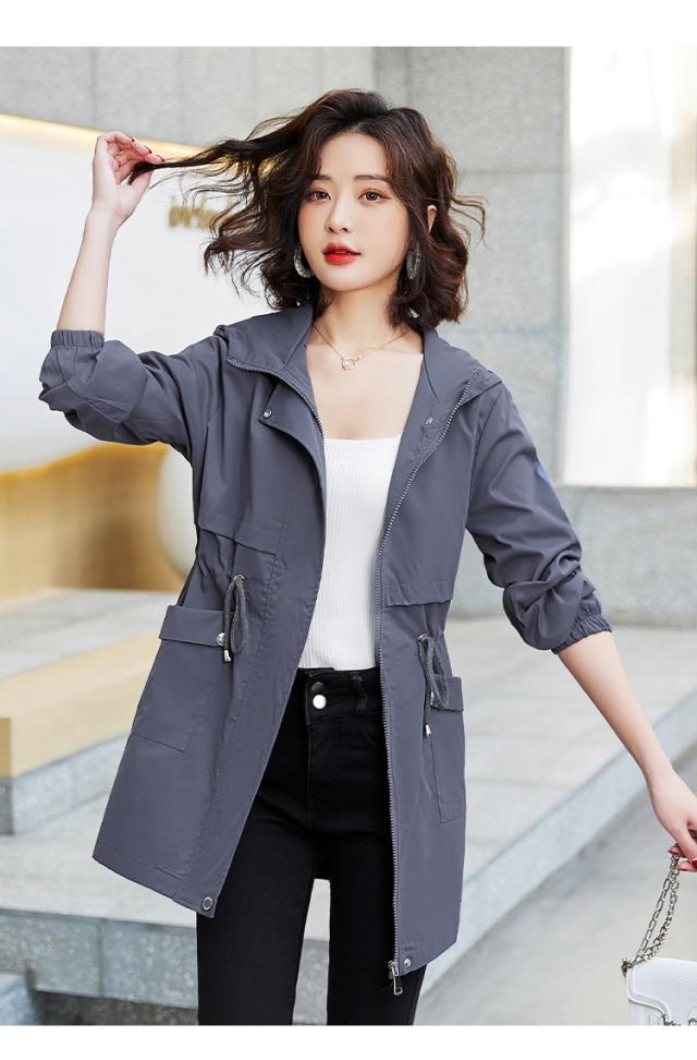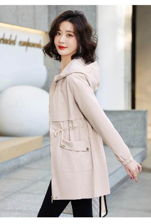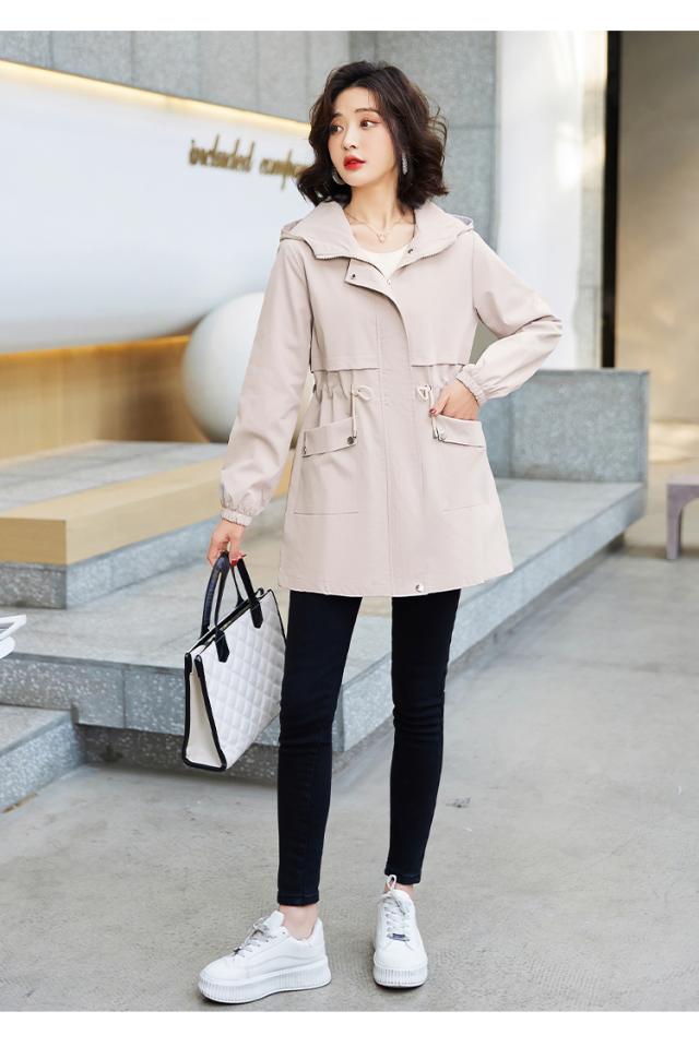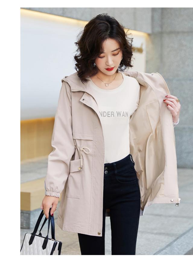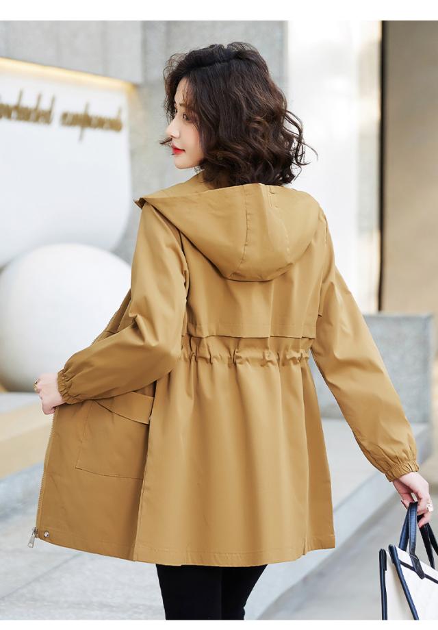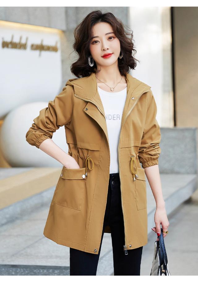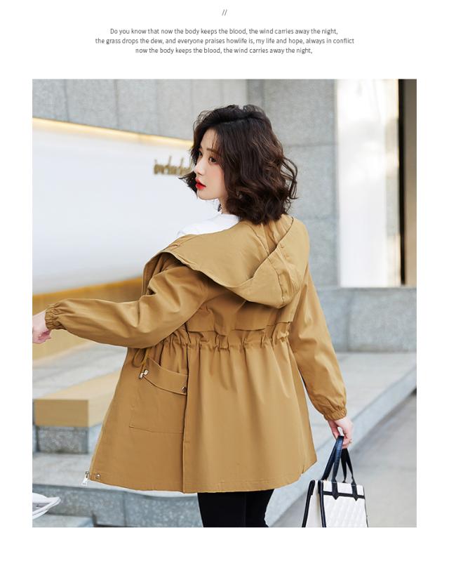 秋のフード付きワークジャケット トップス コート ジャケット 上着 トレンチコート ミドル丈 袖あり 長袖 襟付き スマート ファスナー 前開き ポリエステル 大人可愛い 大人 上品 お洒落 かっこいい モダン 無地 春 秋 20代 30代 通勤 韓国系 M L XL 2XL 3XL ゆる ブラック パープル ブラウン ベージュ