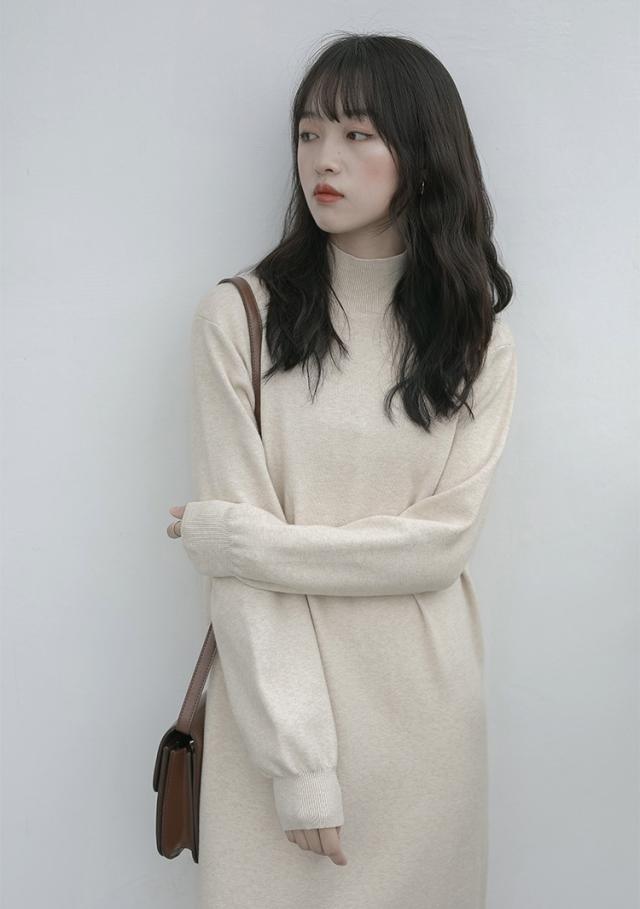 くすみカラーが秋冬にぴったりなニットワンピースです。