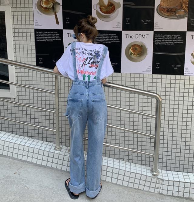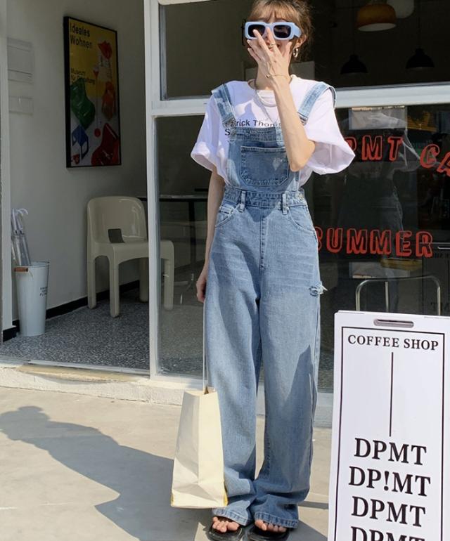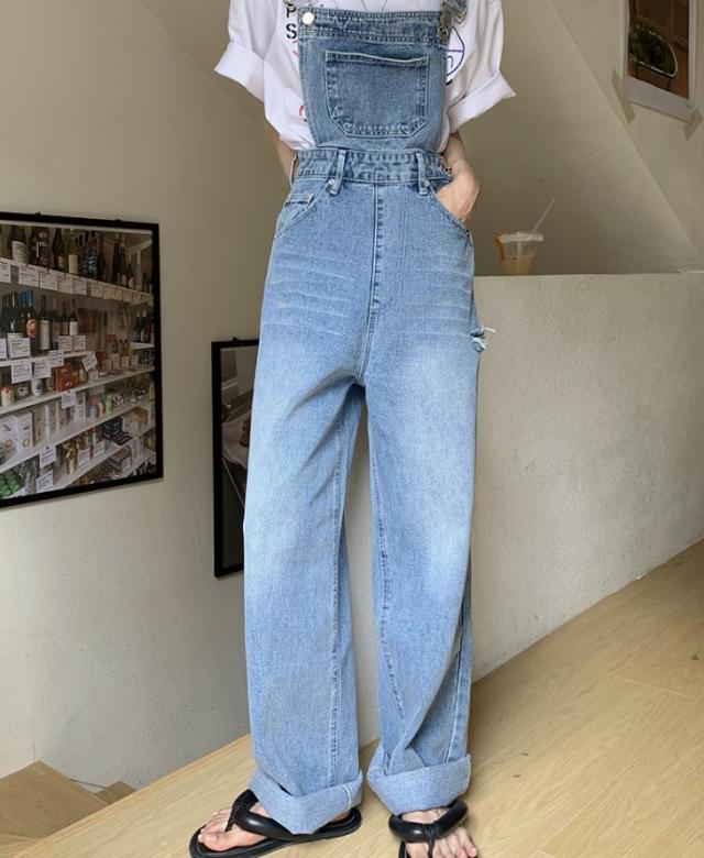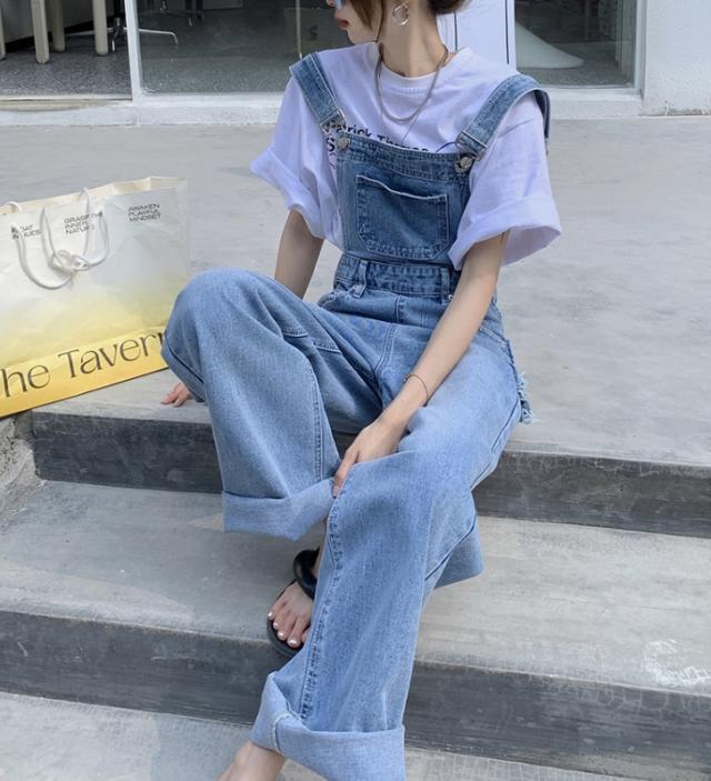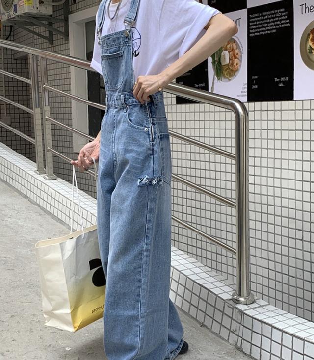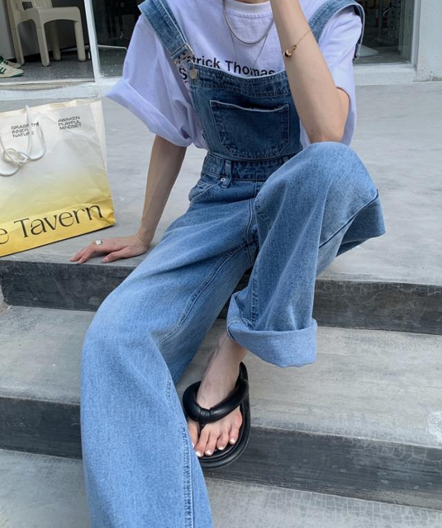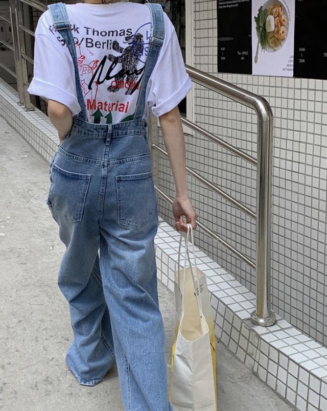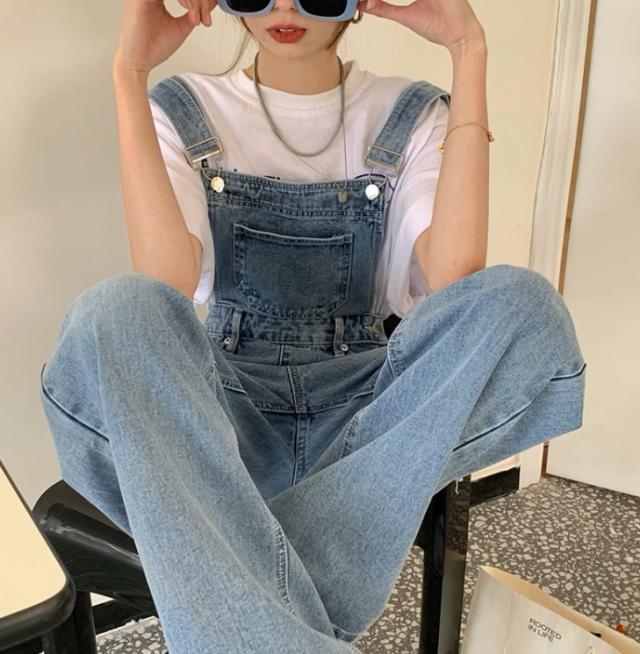 オールインワン サロペット Gパン デニムパンツ かわいい シンプル カジュアル ラフ メンズライク ボーイッシュ スポーティー 無地 オールシーズン 学生 お出かけ お泊まり 休日 リゾート 旅行 着回し 普段使い 重ね着 ブルー