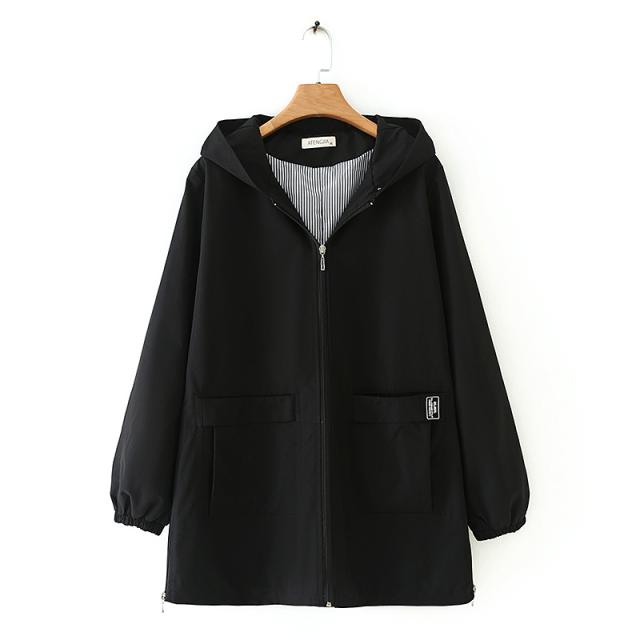 プラスサイズ ウィンドブレーカー ショート丈 袖あり 長袖 ワイド フード付き ファスナー ポケット 綿 シンプル カジュアル 大人 おしゃれ 大人女子 ラフ メンズライク ボーイッシュ スポーティー 無地 春 秋 10代 20代 30代 40代 レディース 女性用 ママ 学生 通学 お出かけ