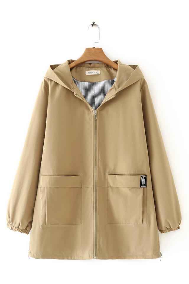 プラスサイズ ウィンドブレーカー ショート丈 袖あり 長袖 ワイド フード付き ファスナー ポケット 綿 シンプル カジュアル 大人 おしゃれ 大人女子 ラフ メンズライク ボーイッシュ スポーティー 無地 春 秋 10代 20代 30代 40代 レディース 女性用 ママ 学生 通学 お出かけ 公園デビュー 休日 アウトドア 高原 普段使い ファッション コーデ スタイル 楽ちん 2XL 4XL 5XL 大きいサイズ ブラック ベージュ カーキ
