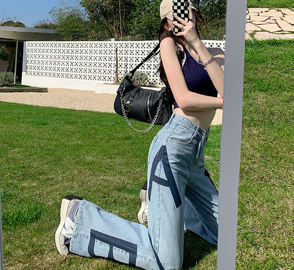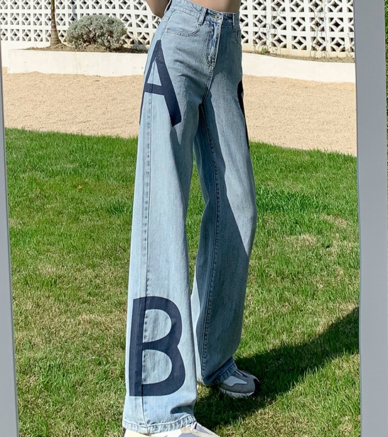 アルファベットがポイントのデニムパンツ