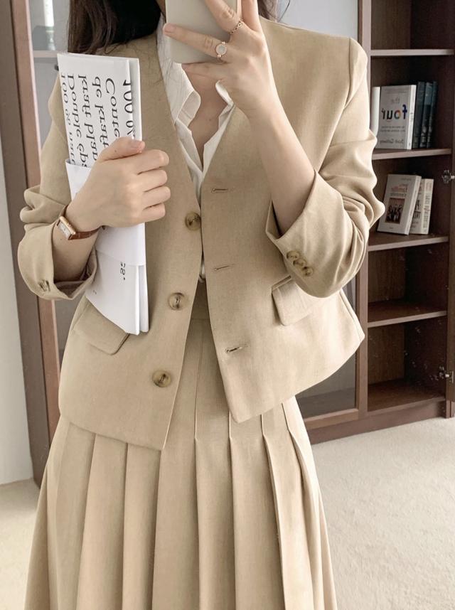 別売りのノーカラージャケットとセットアップとしても着用可能な1枚。