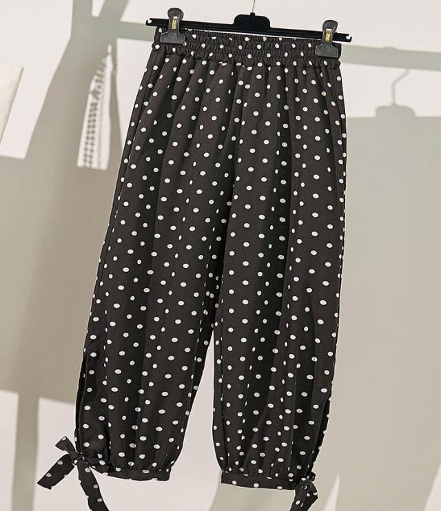 シフォンパンツ ウェストゴム クロップド リボン かわいい 大人可愛い カジュアル おしゃれ 大人女子 こなれ感 ラフ ラブリー キュート ガーリー 個性的 主役級 存在感 とろみ感 無地 ドット柄 水玉 春 夏 10代 20代 30代 40代 レディース 女性用 ママ 学生 通学 デート