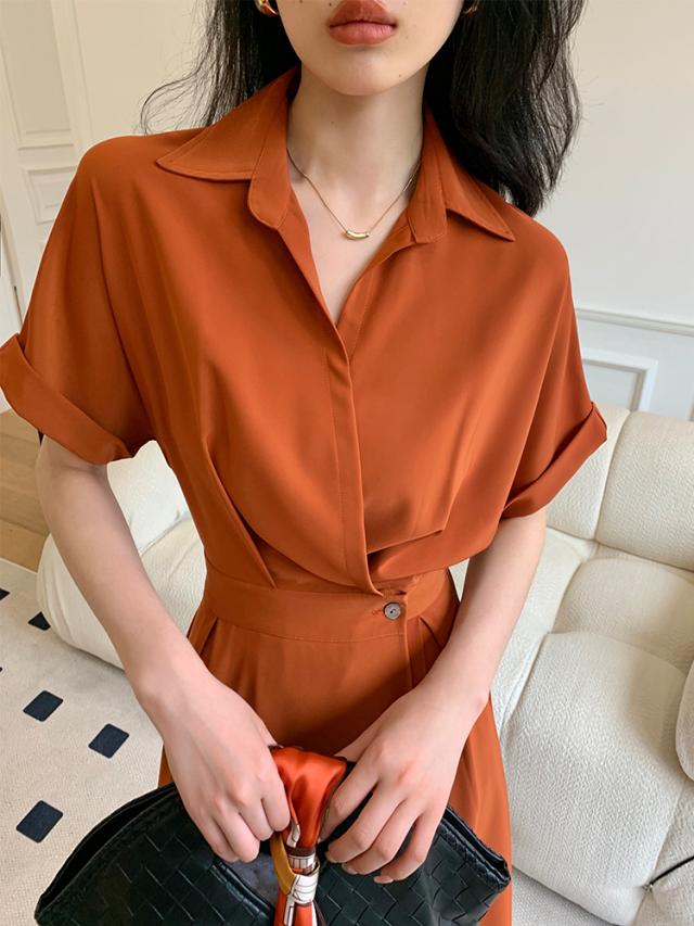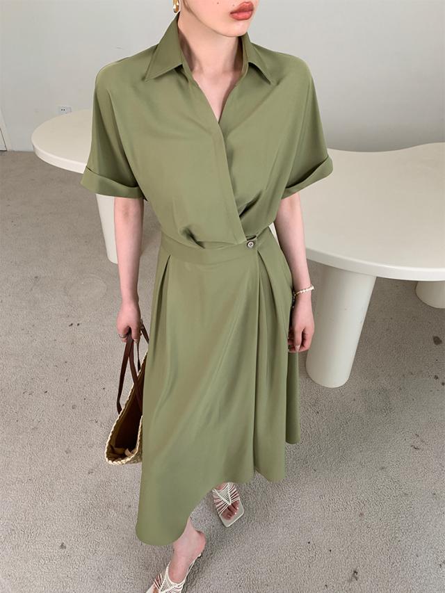 シャツワンピース ワンピース シャツ ブラウス 袖あり 半袖 5分袖 五分袖 Vネック 襟付き かわいい 大人可愛い きれいめ シンプル カジュアル 大人 上品 おしゃれ お洒落 かっこいい 大人可愛い 大人女子 こなれ感 メンズライク マニッシュ ラブリー キュート ガーリー クール