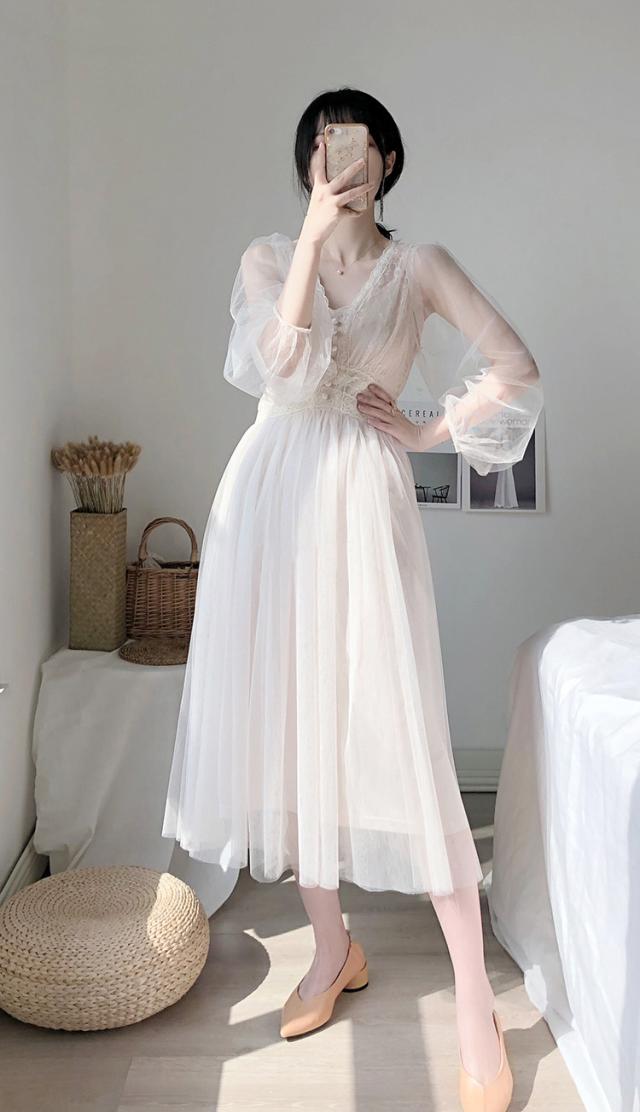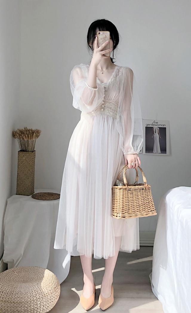 ワンピース ワンピドレス 袖あり 長袖 プリンセススリーブ レース 刺繍 シフォン 透け感 シースルー かわいい 大人可愛い きれいめ 大人 上品 お洒落 レトロ 大人女子 こなれ感 キュート ガーリー エレガント 主役級 存在感 謝恩会 結婚式 二次会 披露宴 10代 20代 30代 レディース 女性用 ママ デート お出かけ 女子会 パーティー イベント リゾート モテ サイズ S M L ホワイト ブルー ピンク ブラック