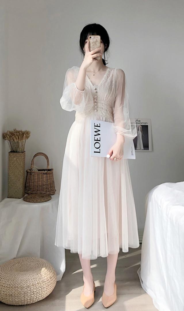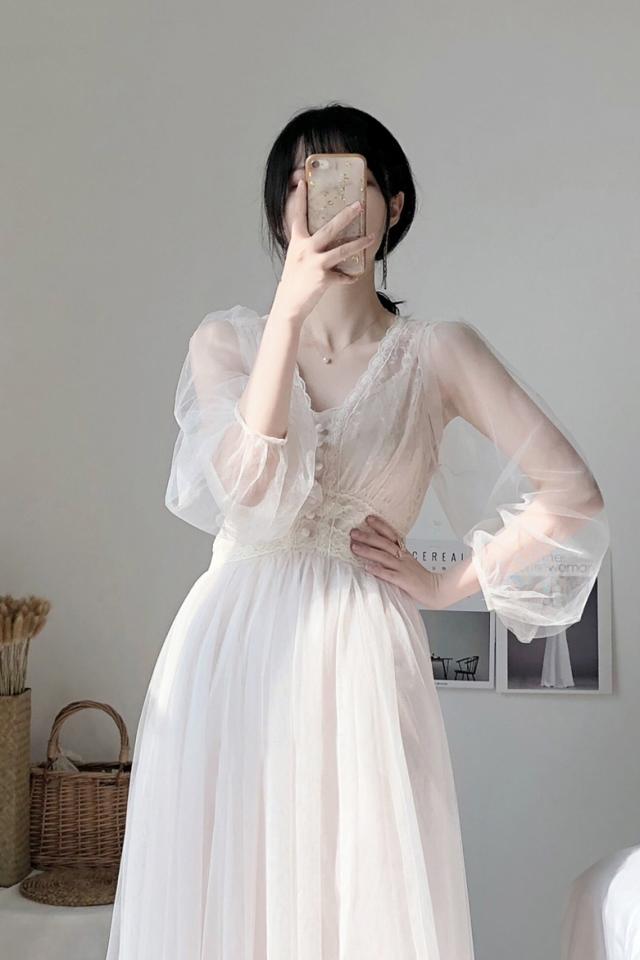 ワンピース ワンピドレス 袖あり 長袖 プリンセススリーブ レース 刺繍 シフォン 透け感 シースルー かわいい 大人可愛い きれいめ 大人 上品 お洒落 レトロ 大人女子 こなれ感 キュート ガーリー エレガント 主役級 存在感 謝恩会 結婚式 二次会 披露宴 10代 20代 30代