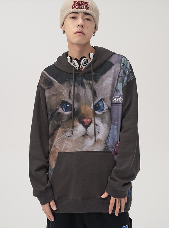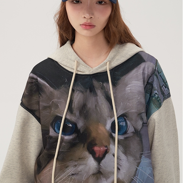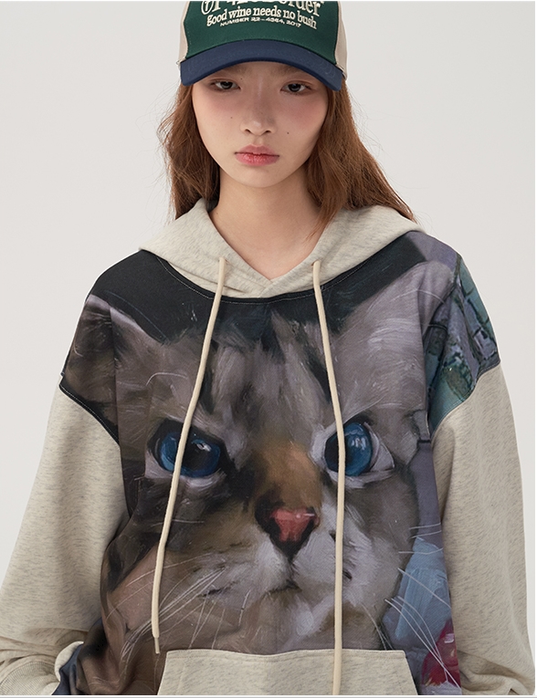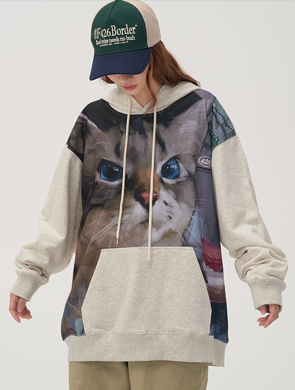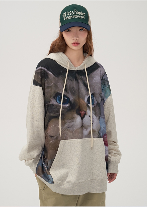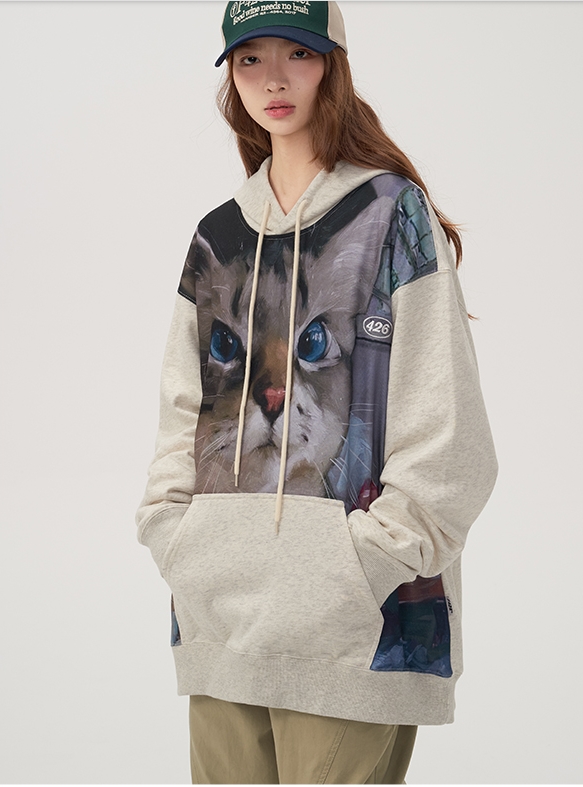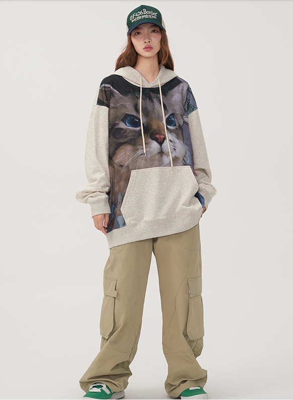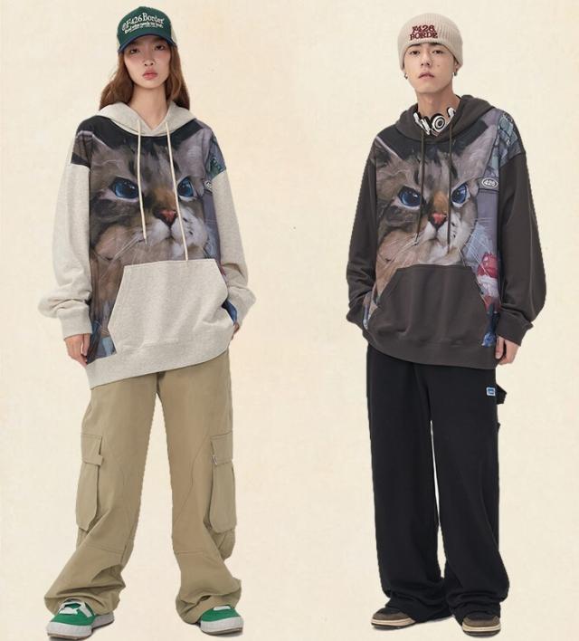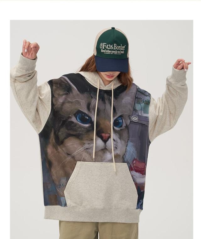 トップス パーカー トレーナー 袖あり 長袖 カジュアル メンズライク ボーイッシュ スポーティー キュート ルーズ 個性的 主役級 存在感 プリント 春 秋 冬 10代 20代 レディース メンズ ペア 男女兼用 ママ 学生 通学 お出かけ 公園デビュー 休日 運動 アウトドア 旅行 重ね着 お揃い 猫 インスタ映え サイズ S M L ホワイト ブラック