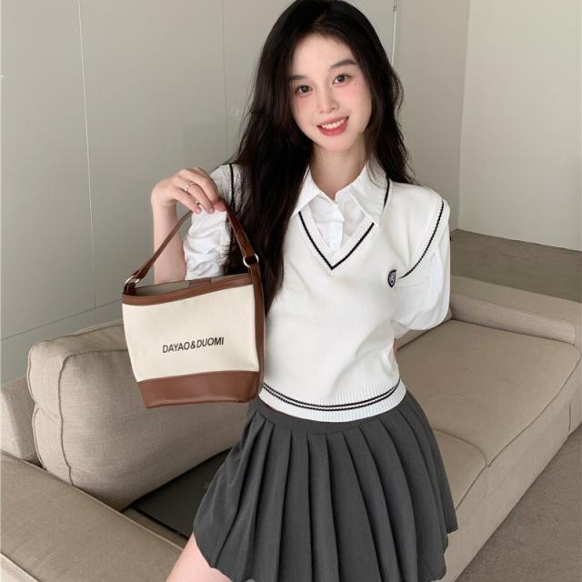 シャツにベストを重ね着したようなフェイクツーピースデザイン◎
